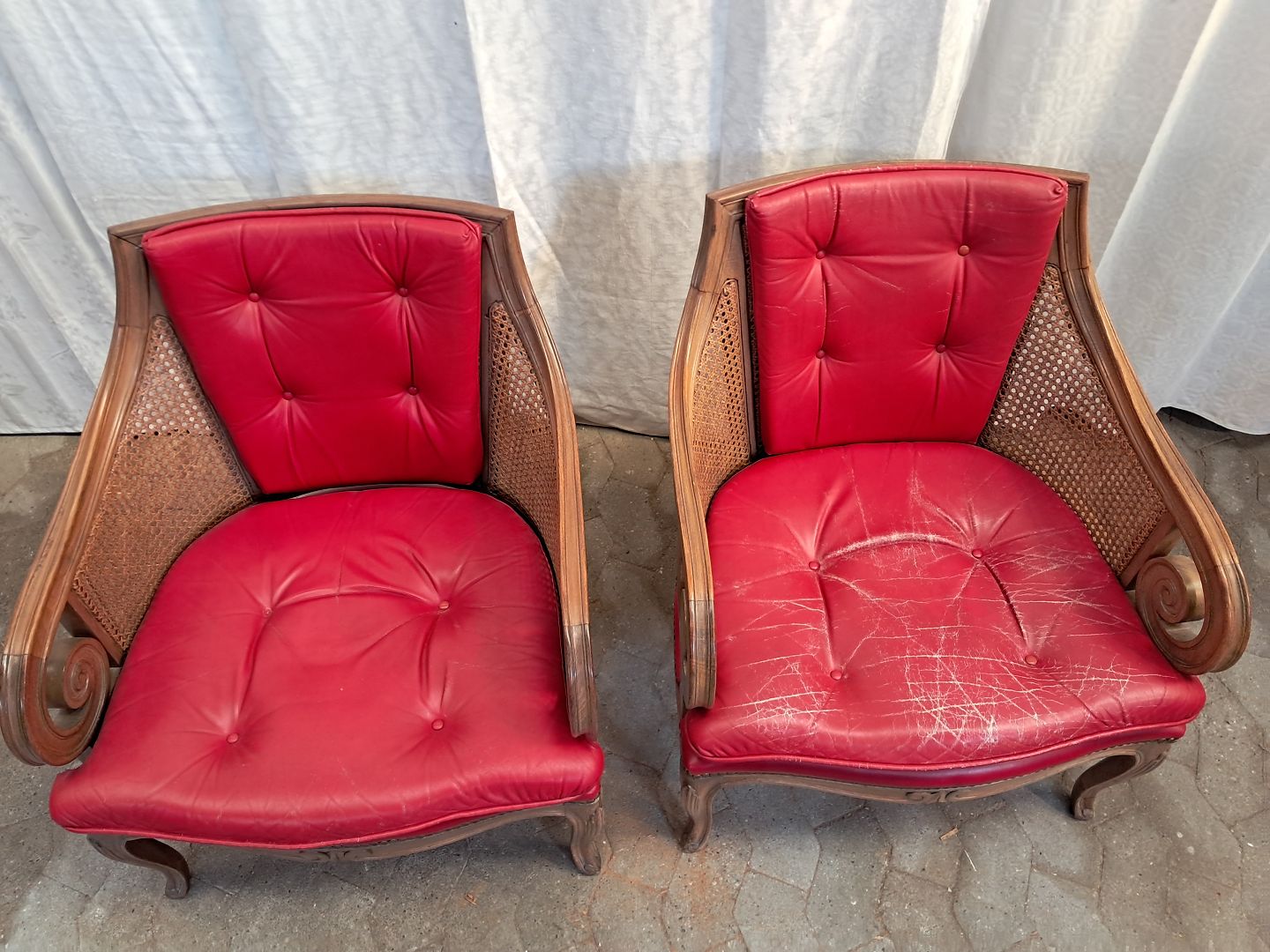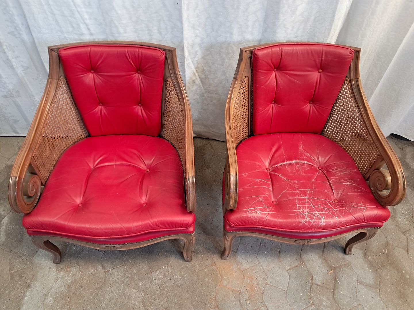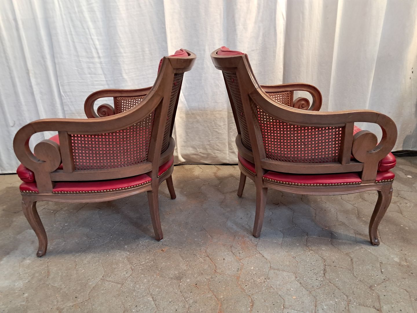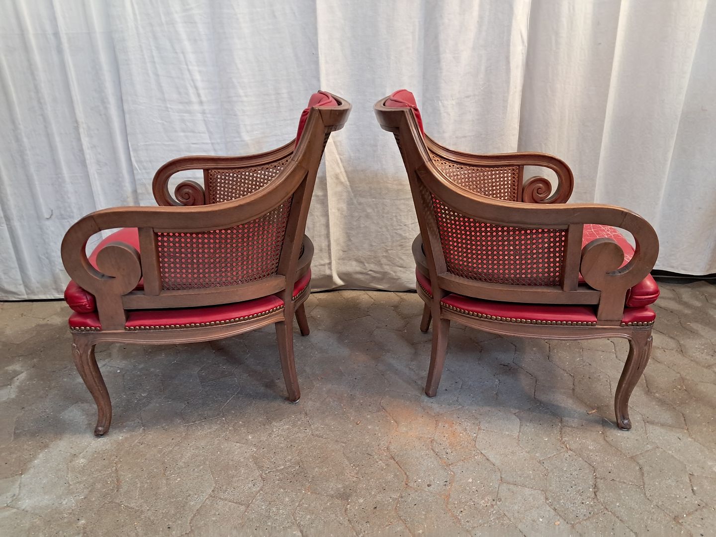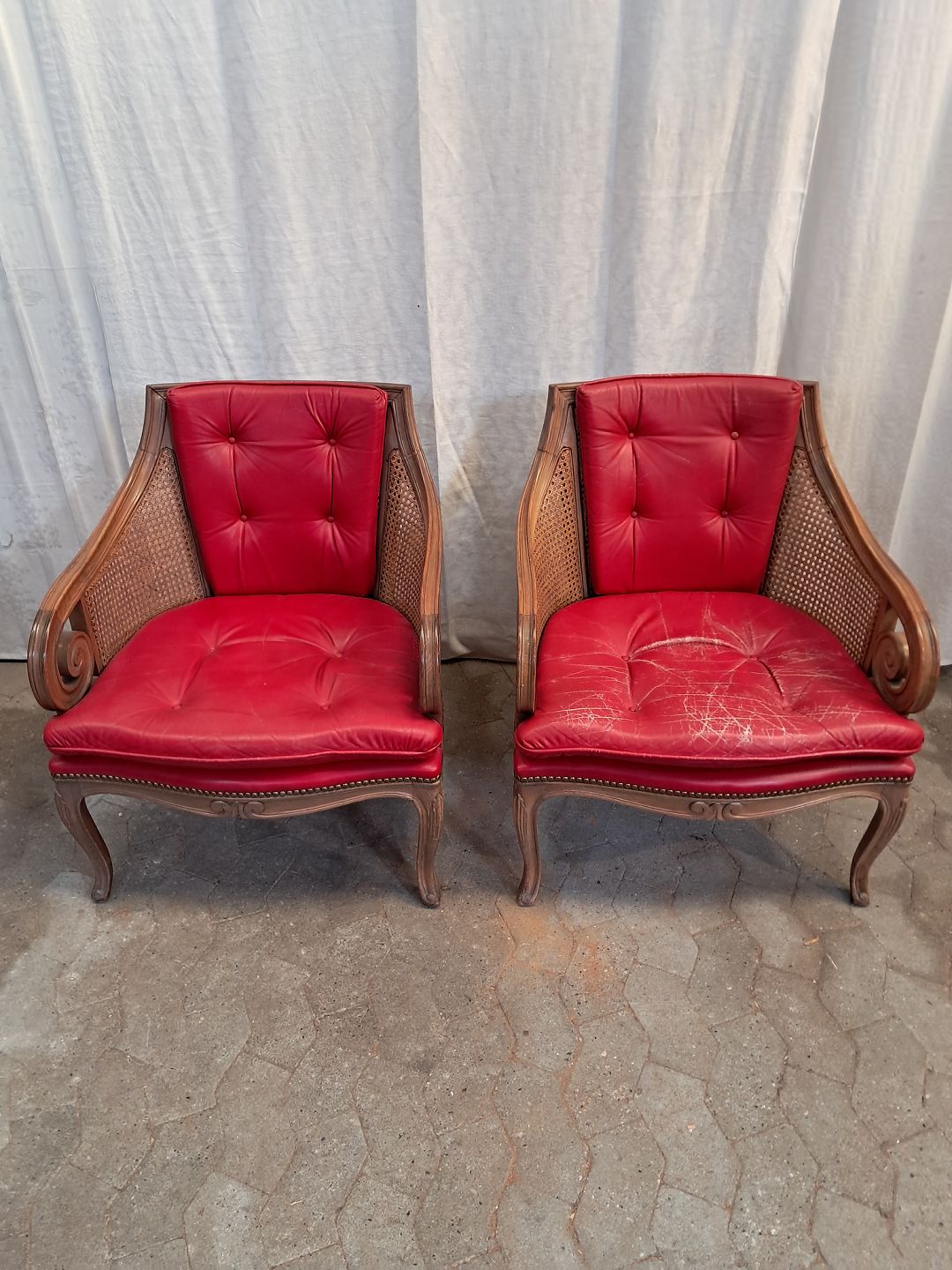 2 Lænestole i massivt bøgetræ med rørflet og læderhynder, fra 1980erne. De har brugsspor.. Ryghøjde 105cm Sædehøjde 41cm Emne nummer: 91735