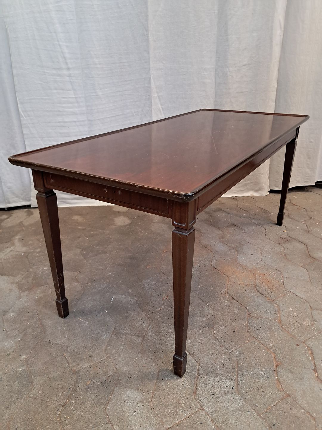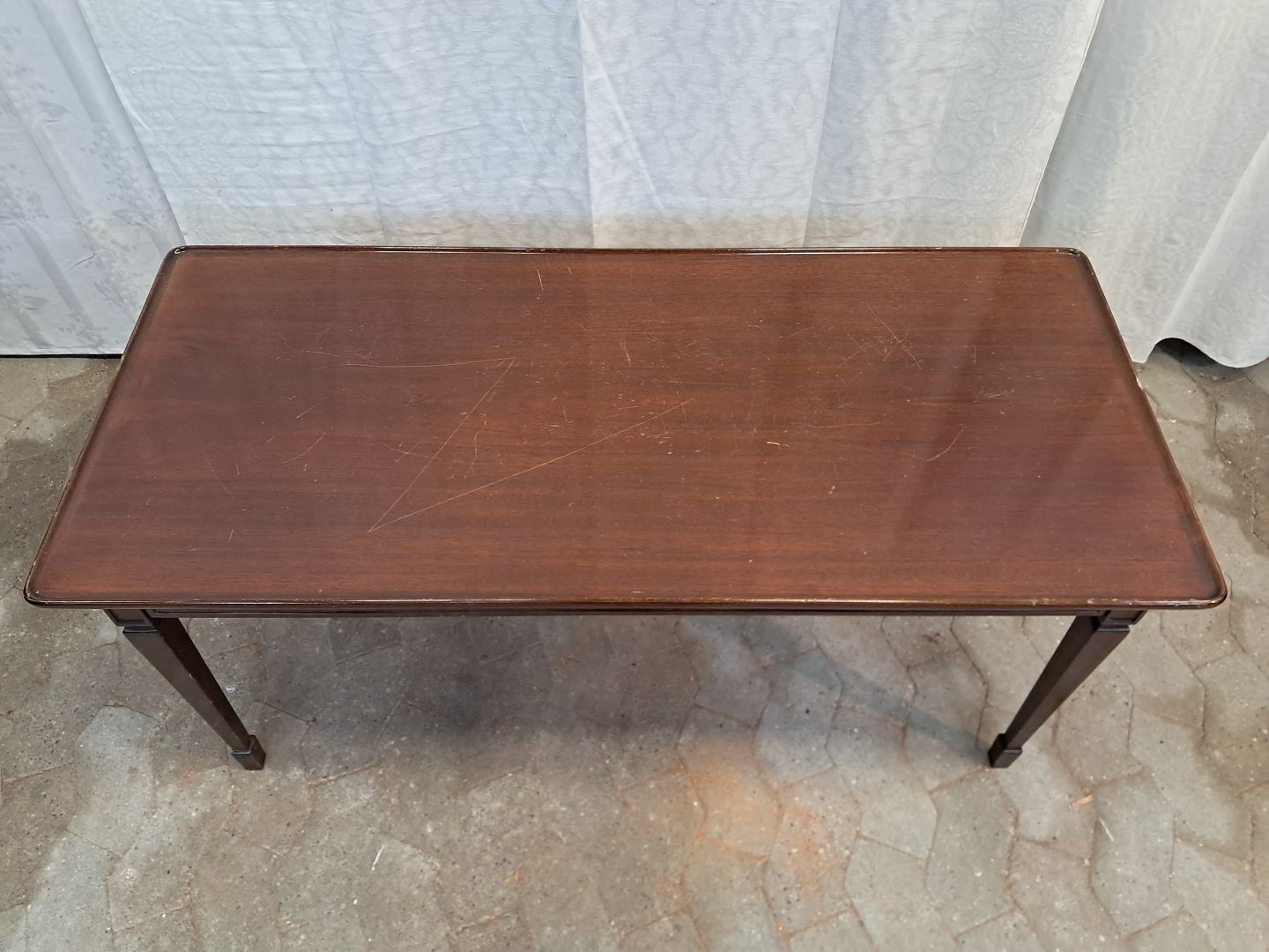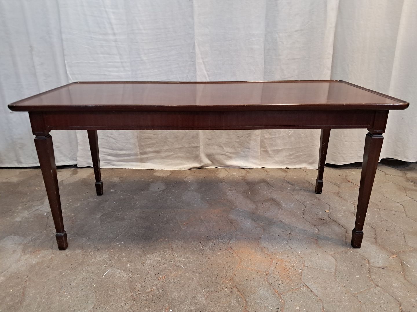 Sopfabord i fineret mahogni, fra 1980erne. Det har brugsspor/ridser. Højde 53cm Bredde 53cm Længde 120cm Emne nummer: 91738