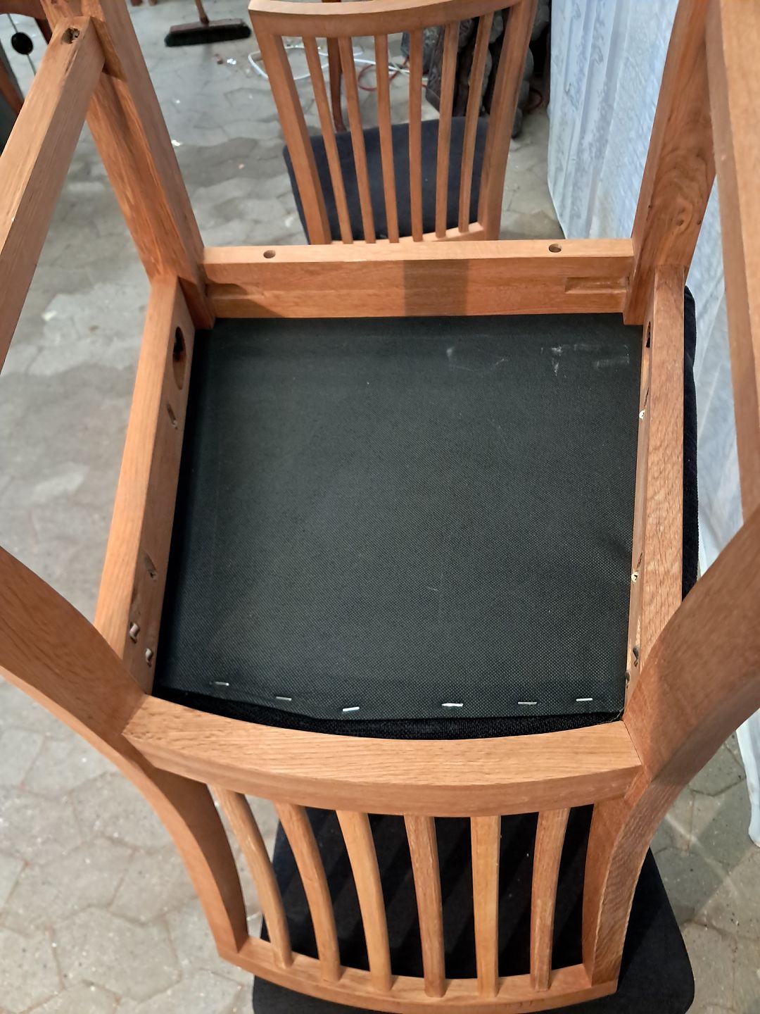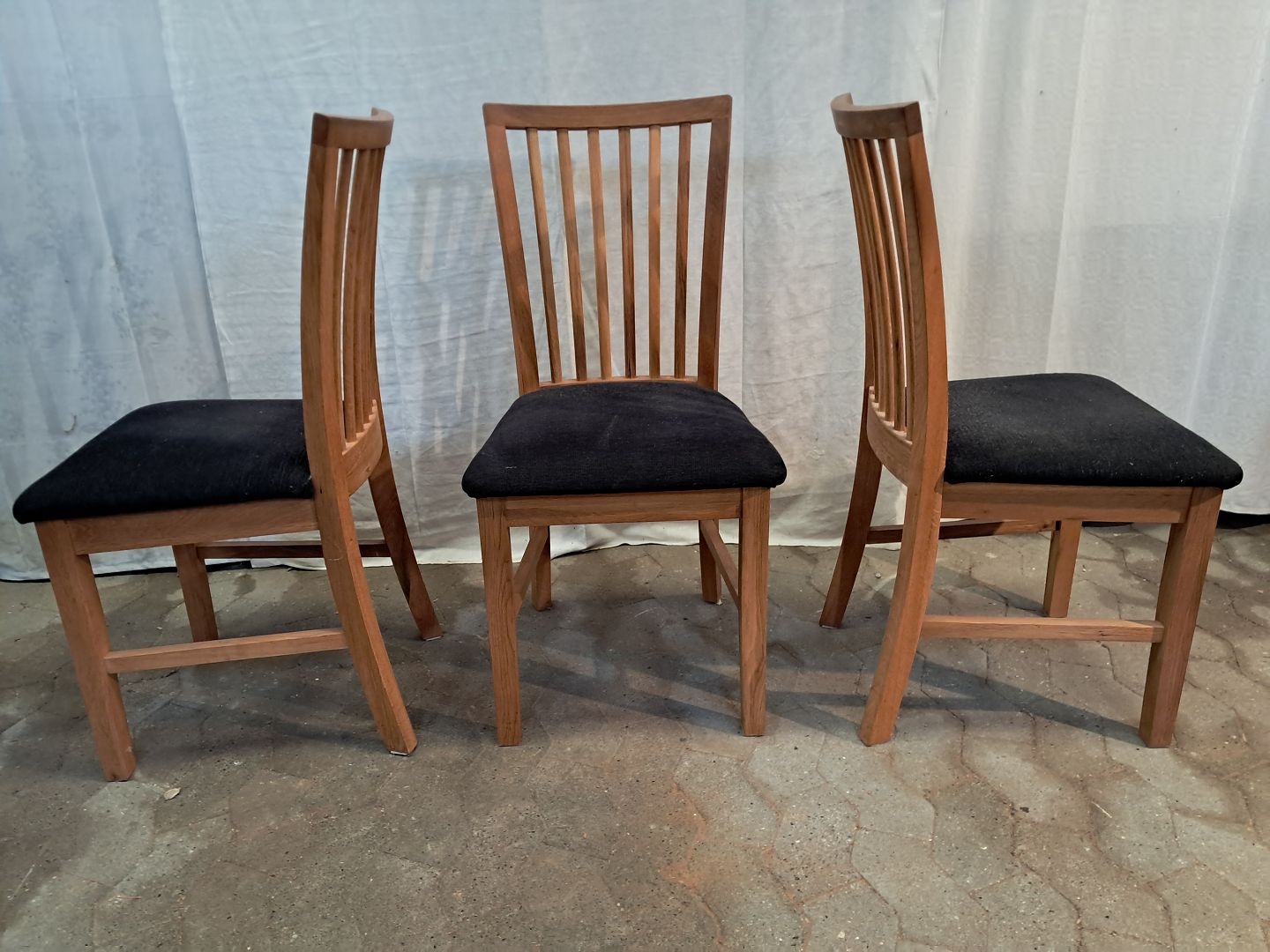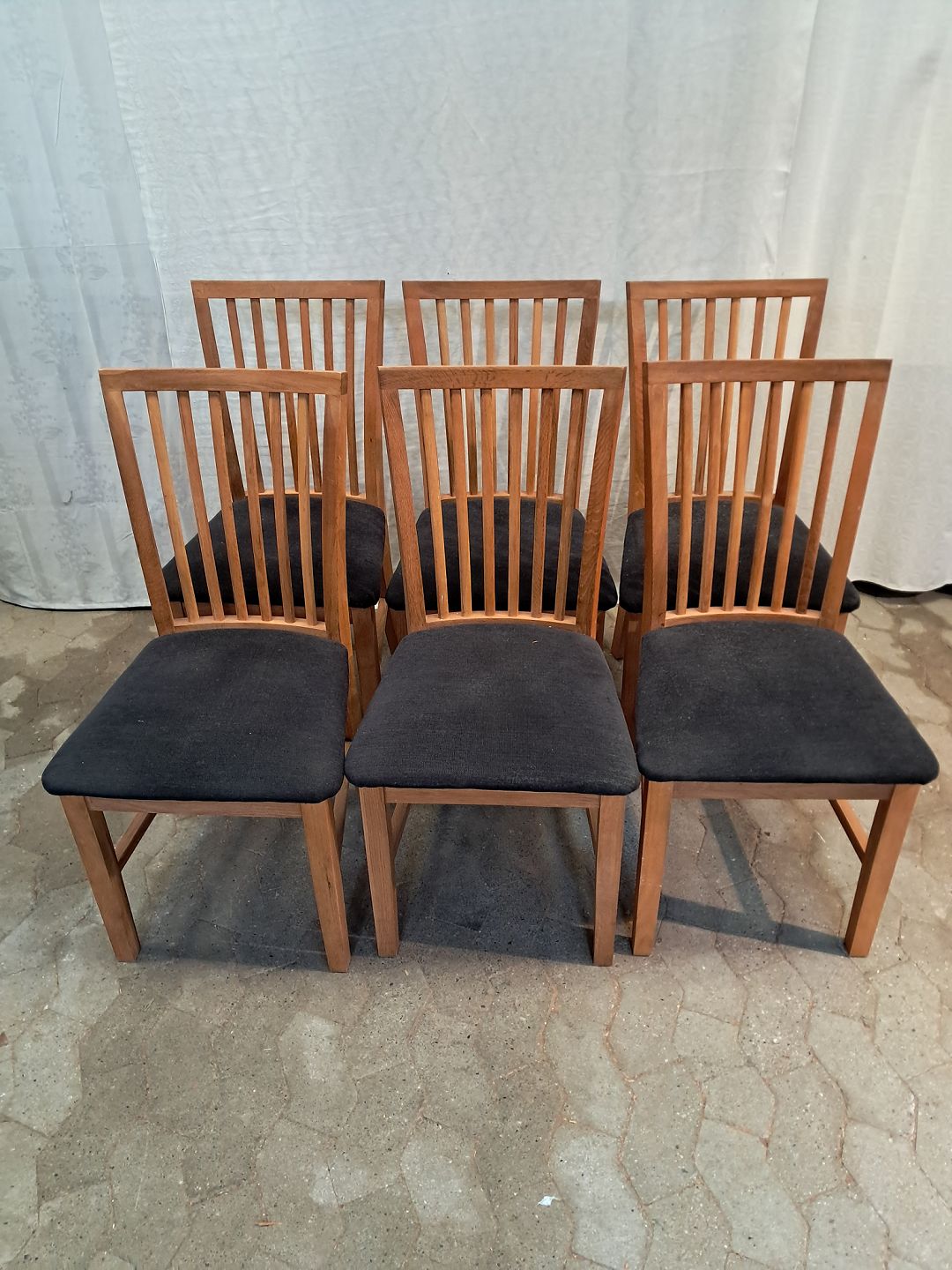 6 Stole i massivt egetræ, fra 2000erne. De har brugsspor. Ryghøjde 94cm Sædehøjde 45cm Emne nummer: 91754