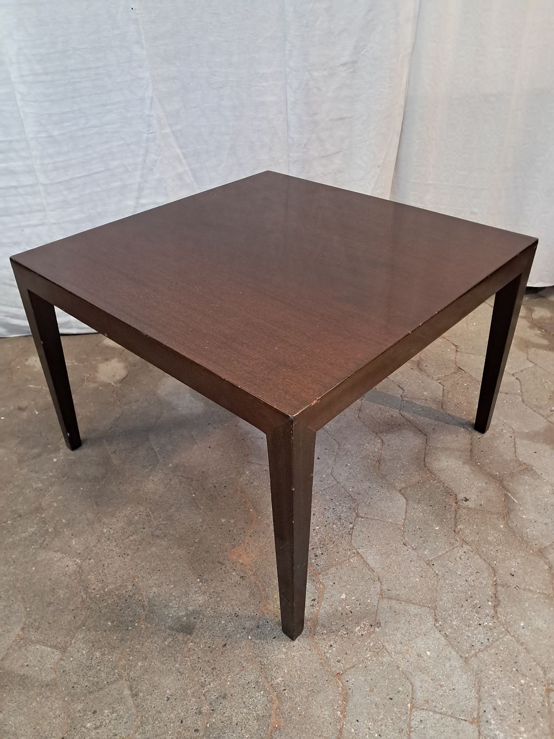 Kvadratisk Haslev sofabord i fineret mahogni, fra 1980erne. Det har en del bruggspor/ridser. Højde 51cm Bredde 74cm Længde 74cm Emne nummer: 91767