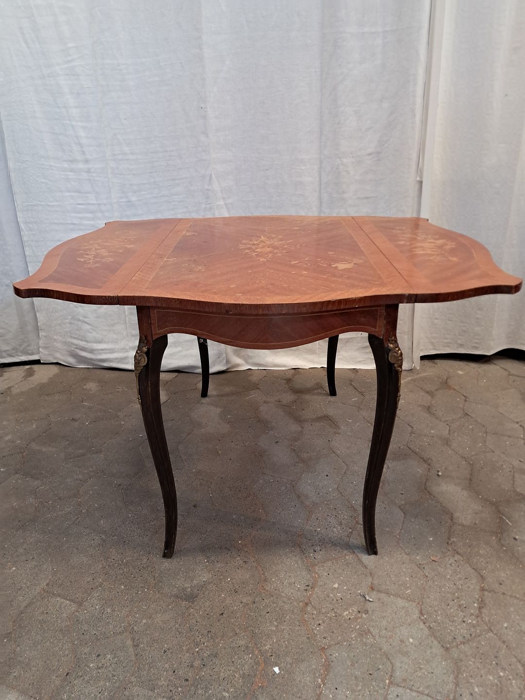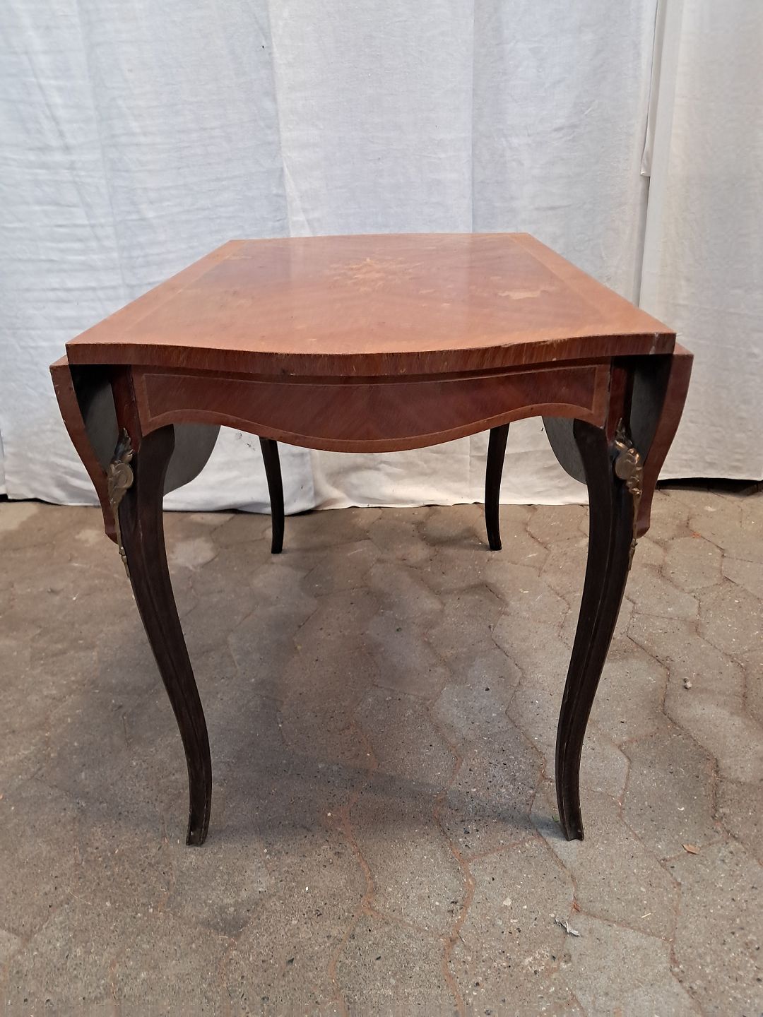 Sofabord i fineret mahogni med klapper, fra 1980erne. Det har en del brugsspor. Højde 59cm Længde 87cm Bredde 50cm Bredde med klapper 98cm Emne nummer: 91774