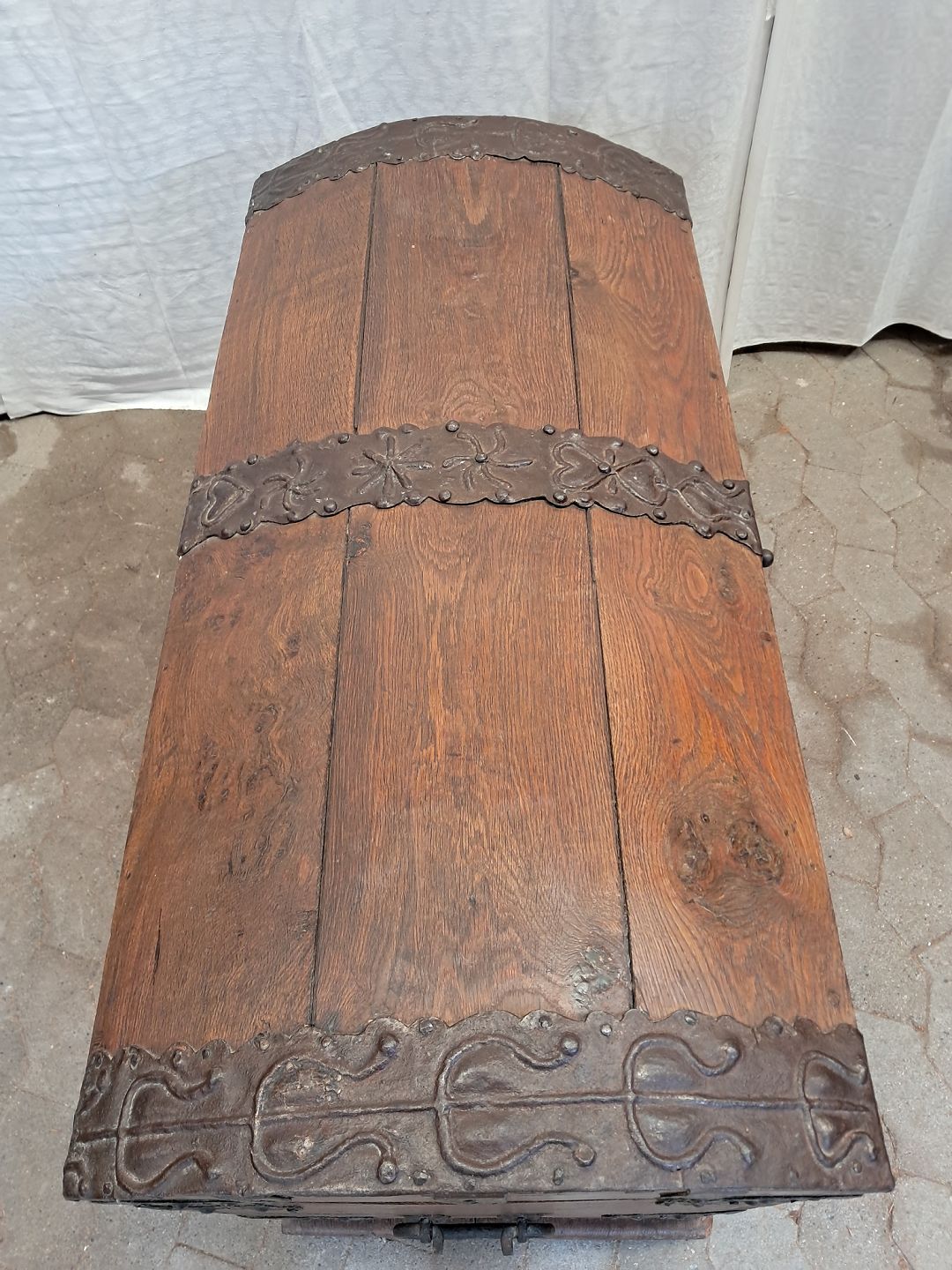 Kiste i massivt egetræ, fra 1860erne. Den har patina. Højde 70cm Bredde 121cm Dybde 58cm Emne nummer: 91775