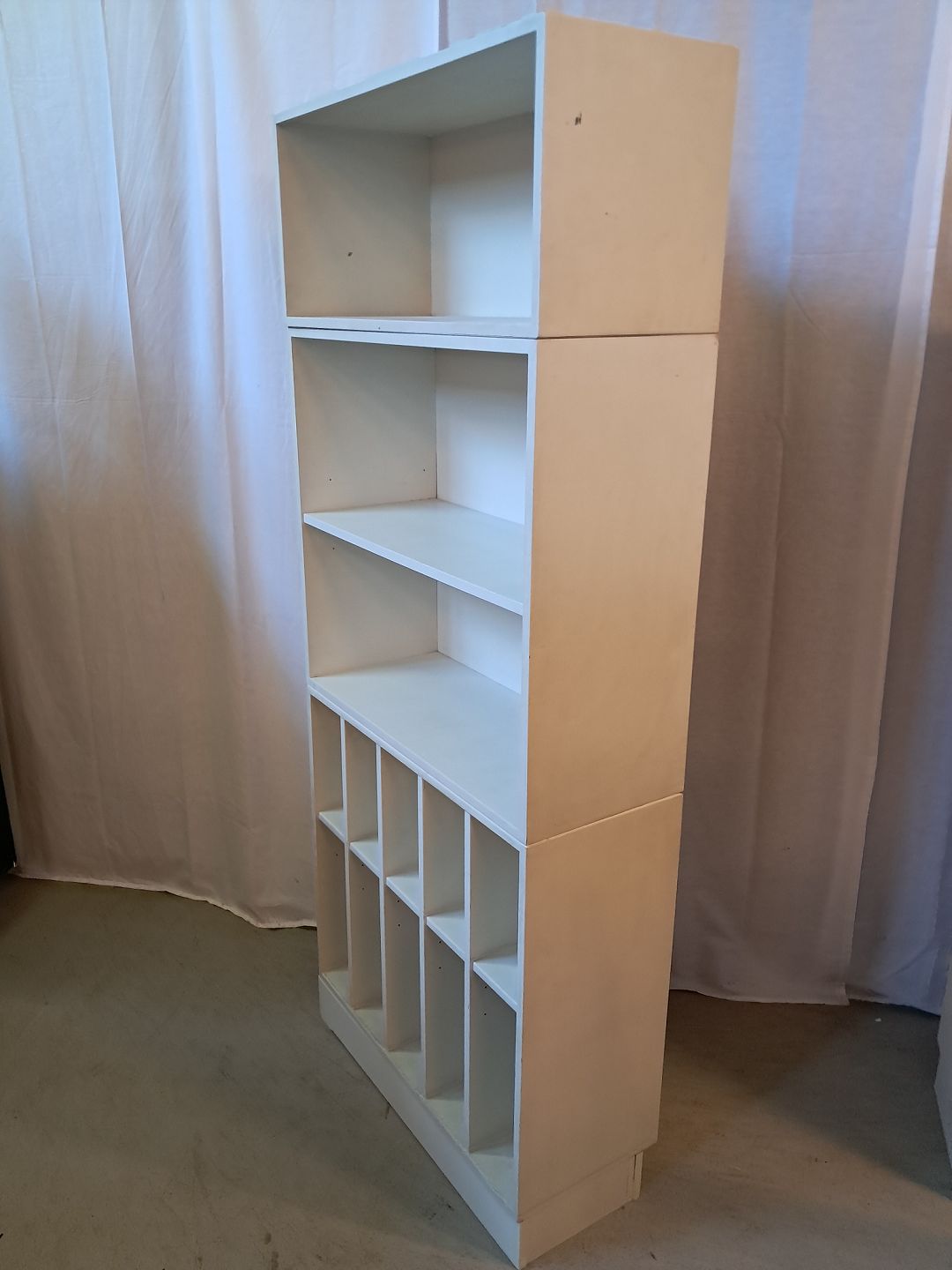 Malet reol i 3 dele, fra 1980erne. Den har brugsspor. Højde 173cm Bredde 71cm Dybde 29cm Emne nummer: 76859