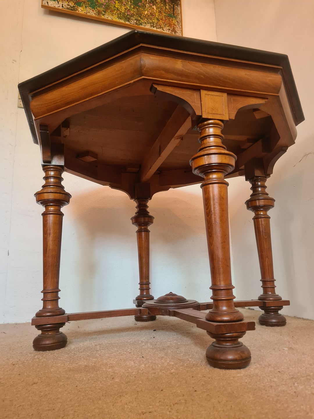 8 kantet salonbord fra 1940'erne i mahogni. Fremstår pænt og velholdt uden nævneværdige brugsspor. Højde 71 cm. Længde 90 cm. Bredde 88 cm. Emne nummer: 80896