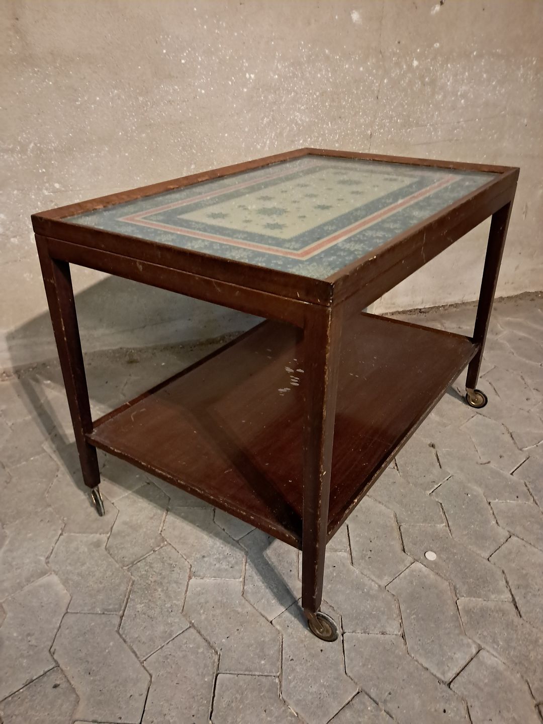 Bord i bøgetræ med glasplade, fra 1950erne. Det har brugsspor/ridser. Højde 61cm Bredde 54cm Længde 84cm Emne nummer: 91823