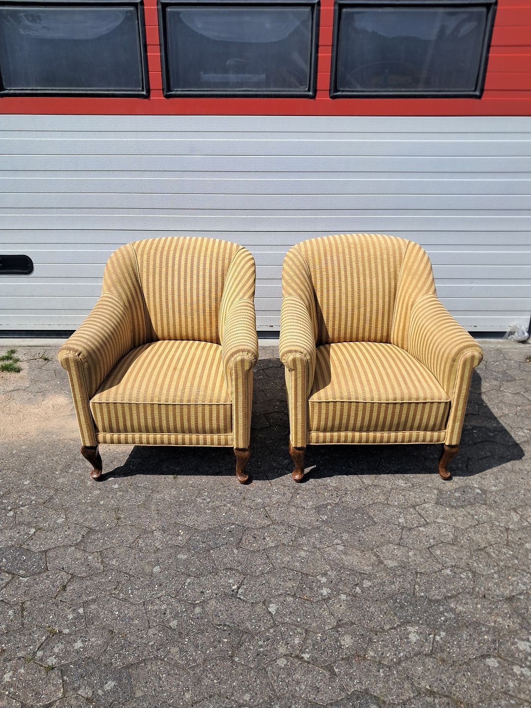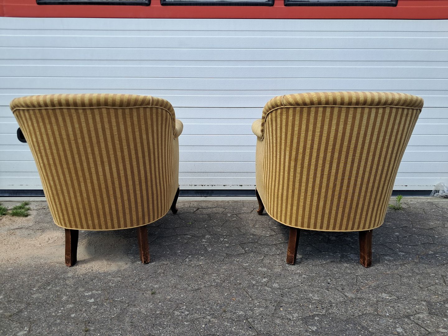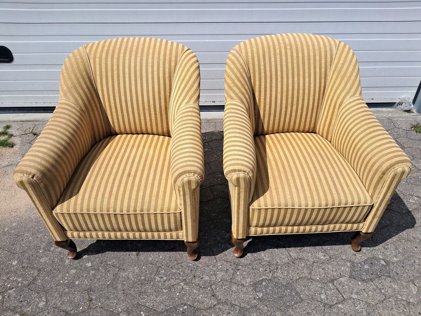 2 Lænestole fra 1920erne. De har brugsspor. Ryghøjde 80cm Sædehøjde 44cm Bredde 72cm Dybde 80cm Emne nummer: 76877