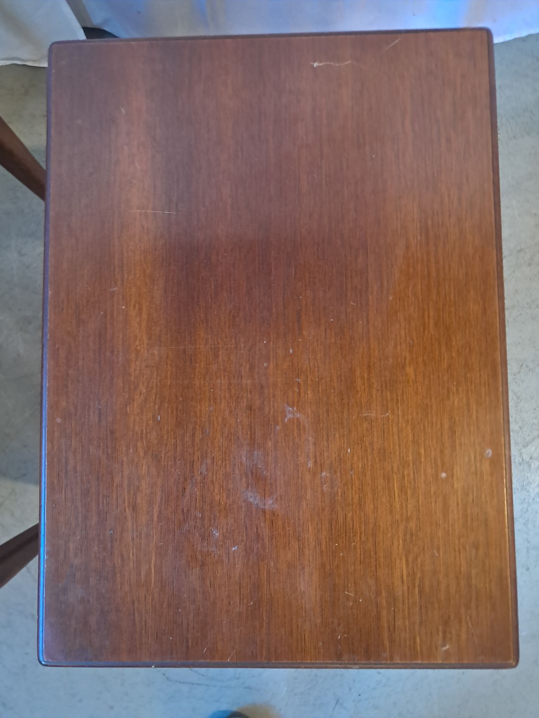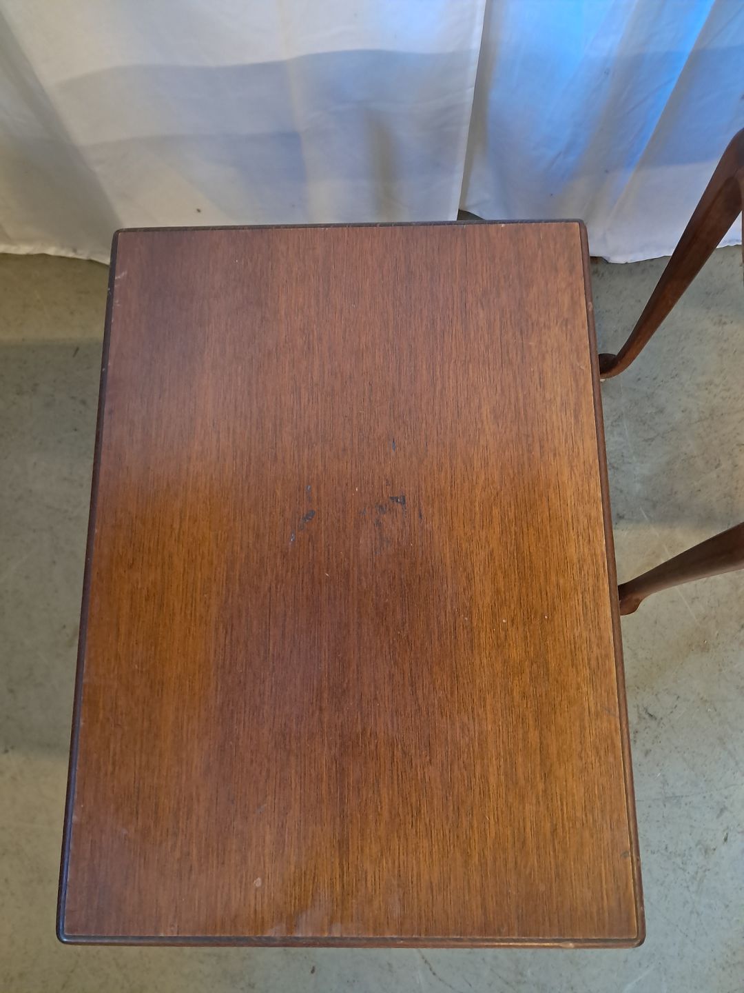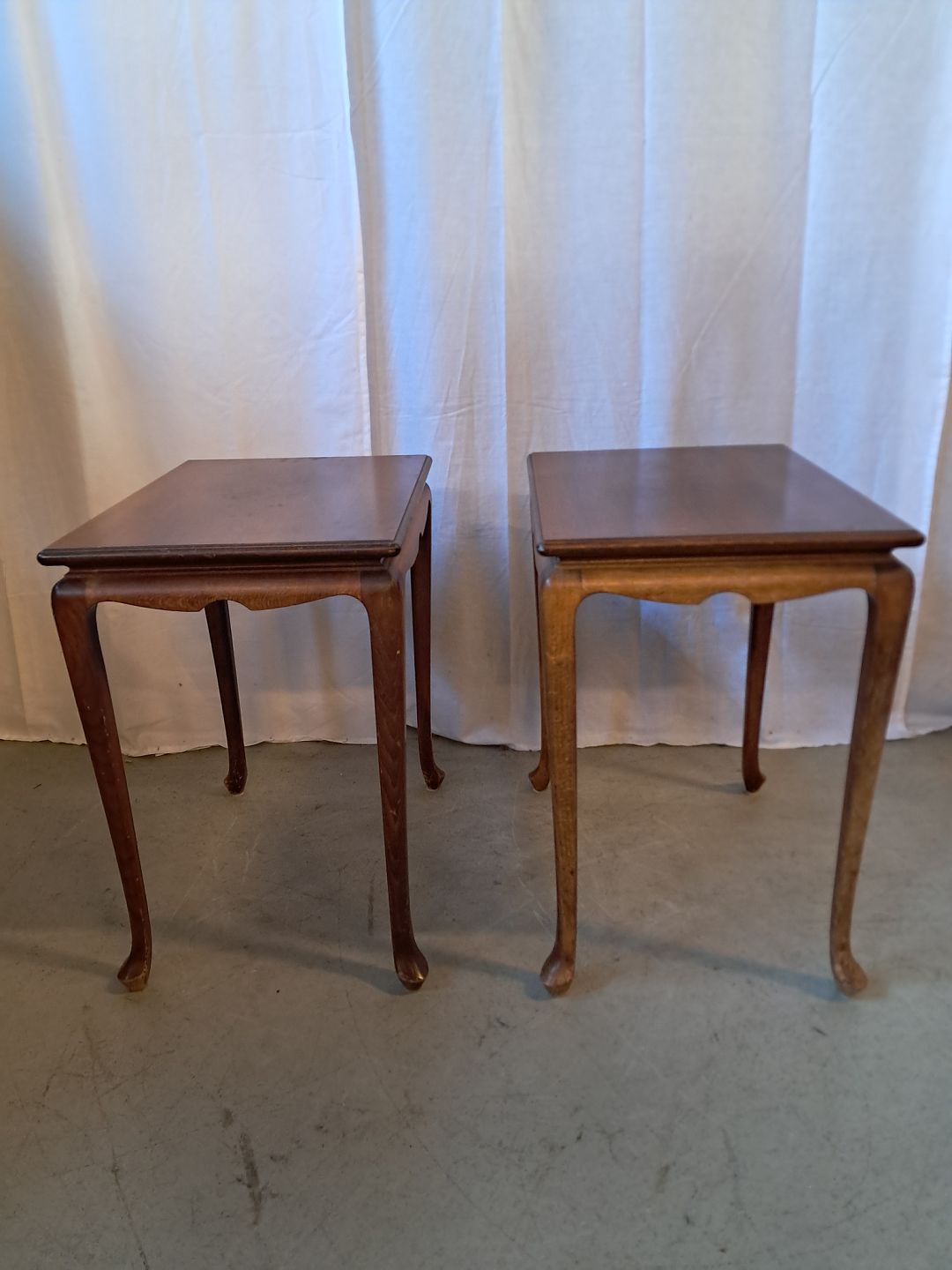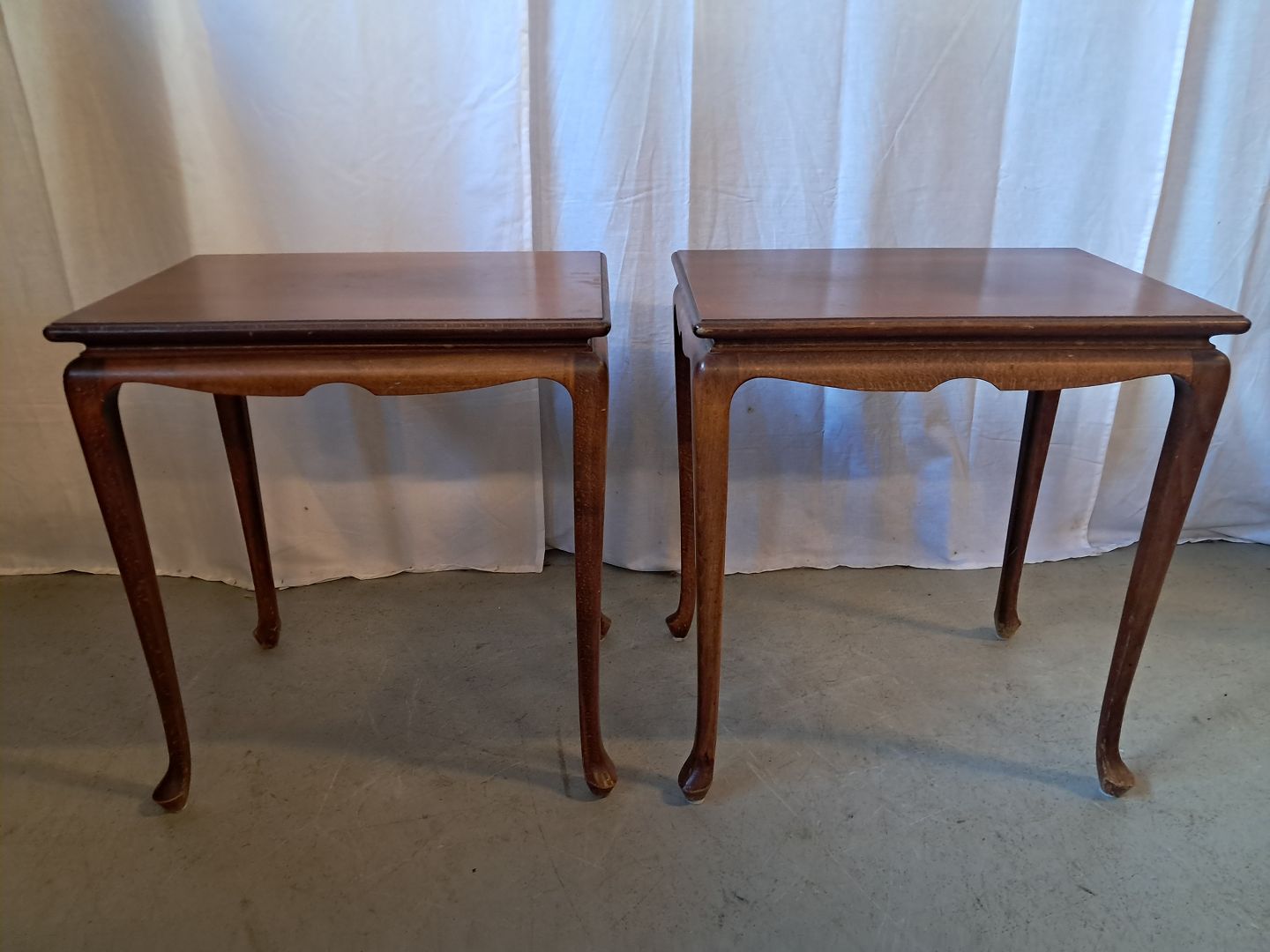 2 Lampeborde i fineret mahogni, fra 1980erne. De har brugsspor. Højde 54cm Bredde 36cm Længde 50cm Emne nummer: 76881