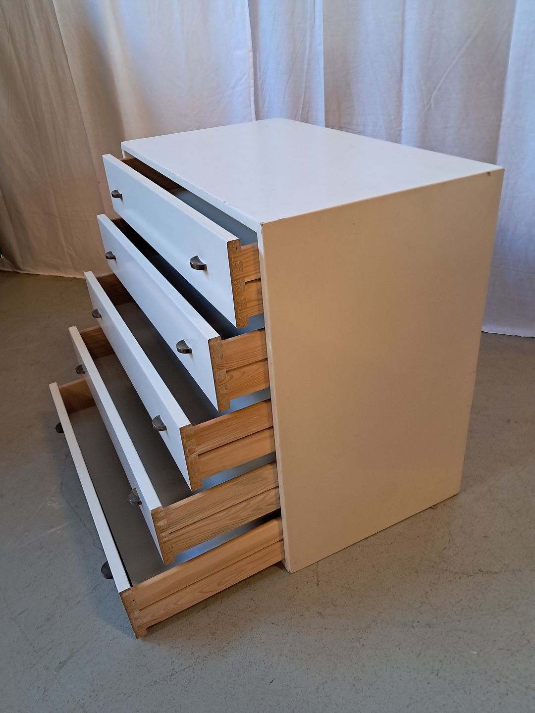 Malet kommode, fra 1980erne. Den har brugsspor og en defekt på siden. Højde 65cm Bredde 71cm Dubde 39cm Emne nummer: 76886