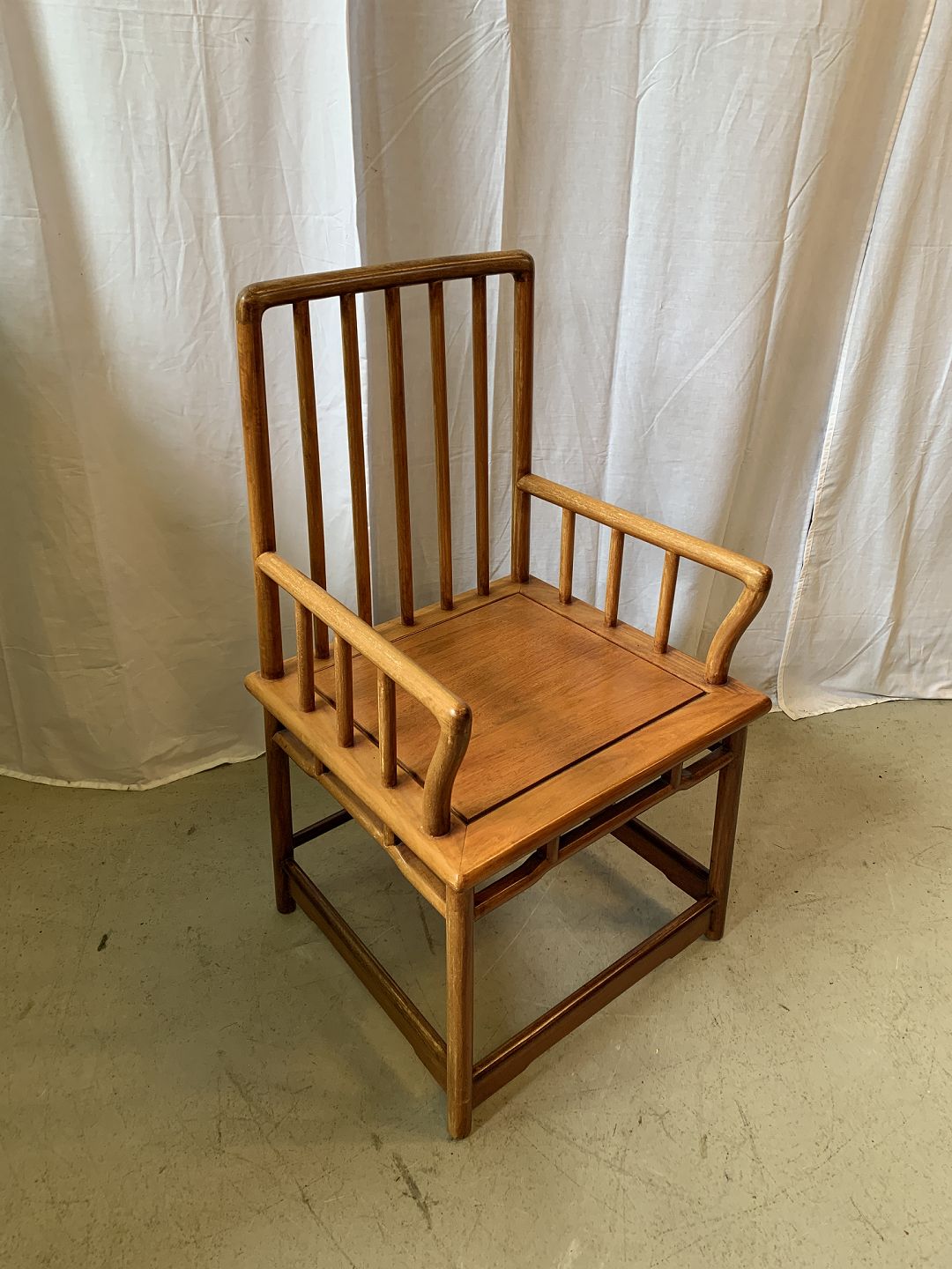 Kinesisk stol i massivt træ, fra 1990erne. Den har brugsspor. Ryghøjde 98cm Sædehøjde 46cm Emne nummer: 76913