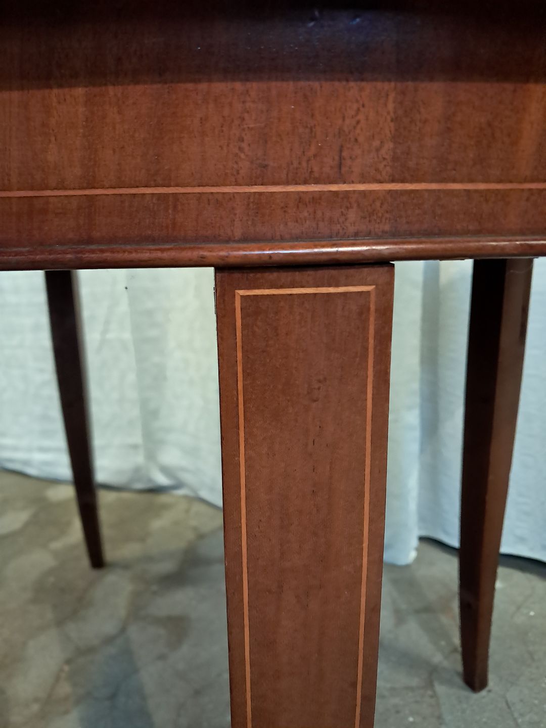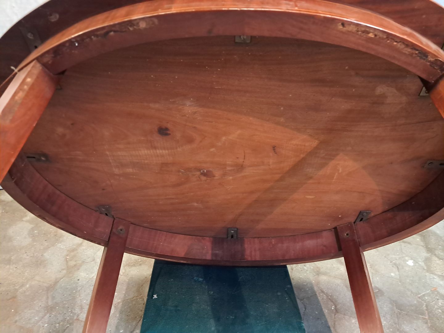 Ovalt salonbord i massivt mahogni, fra 1910erne. Det har brugsspor og rokker lidt, fordi det mangler 4 bolte.(se foto) Højde 78cm Bredde 94cm Længde 126cm Emne nummer: 91836