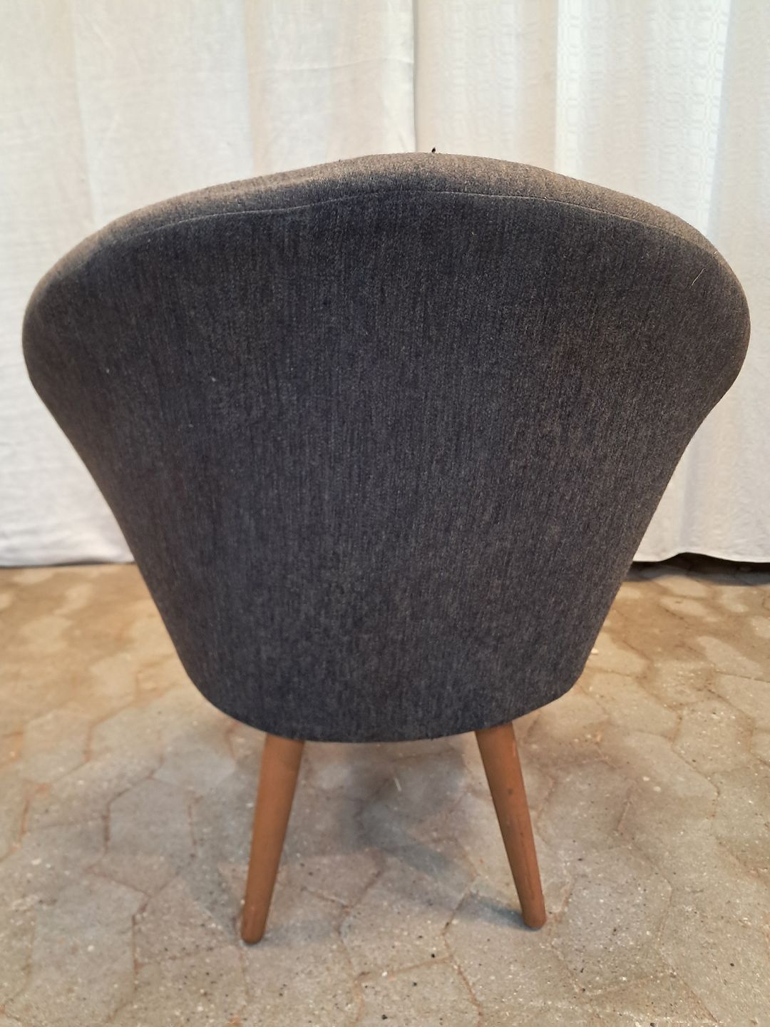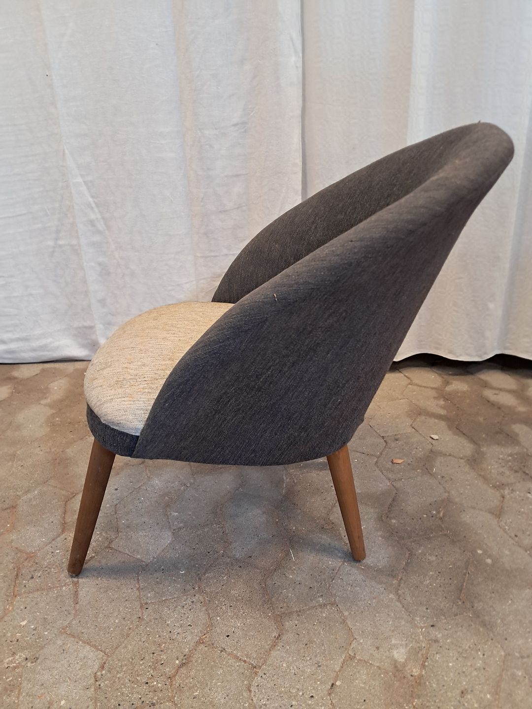 Lænestol med ben i bøgetræ, fra 1960erne. Betrækket har brugsspor. Ryghøjde 72cm Sædehøjde 39cm Emne nummer: 91838