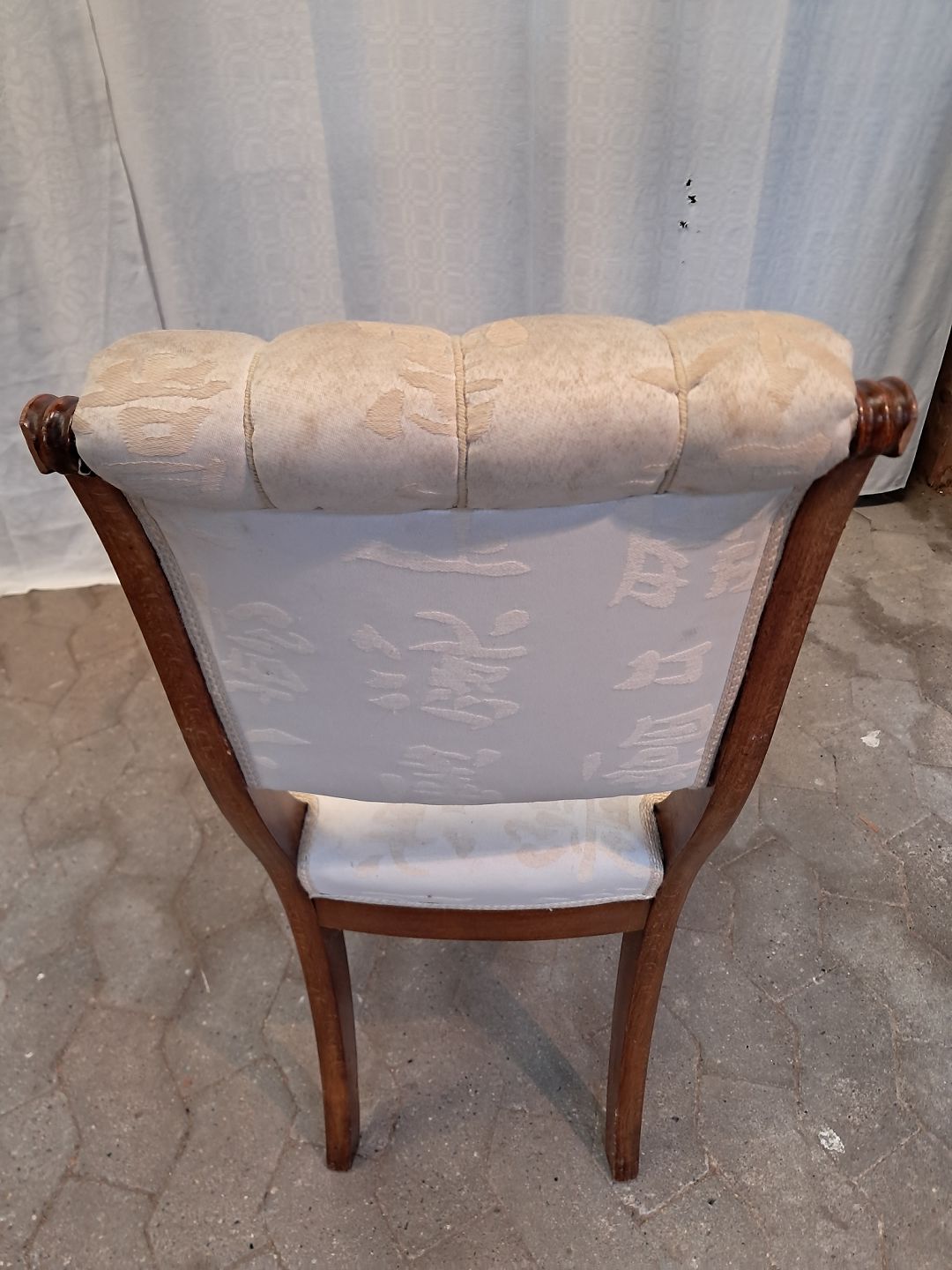 Salonstol i massivt bøgetræ, fra 1910erne. Betrækket har lidt brugsspor. Ryghøjde 87cm Sædehøjde 48cm Emne nummer: 91861