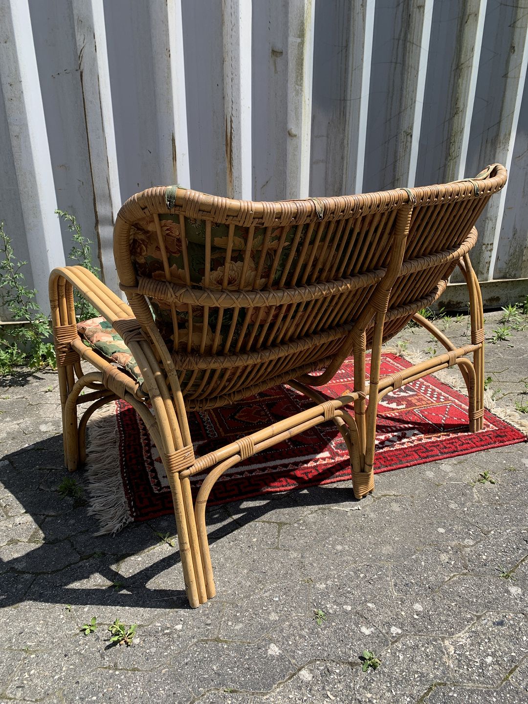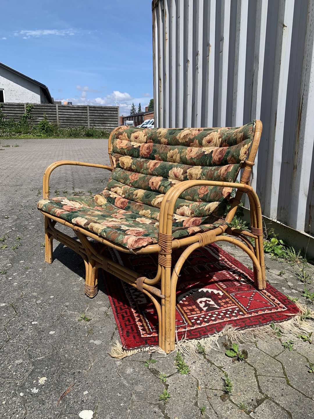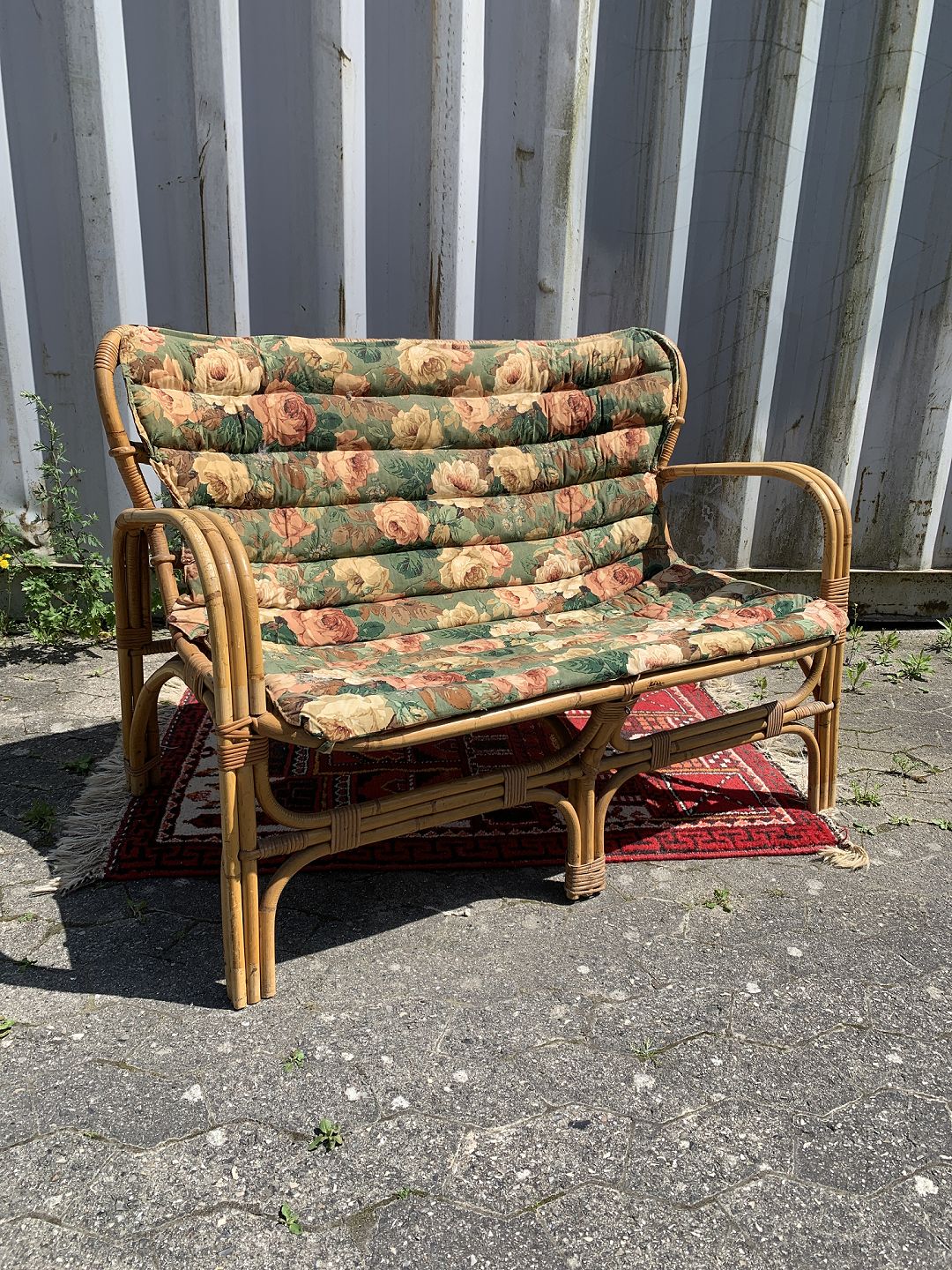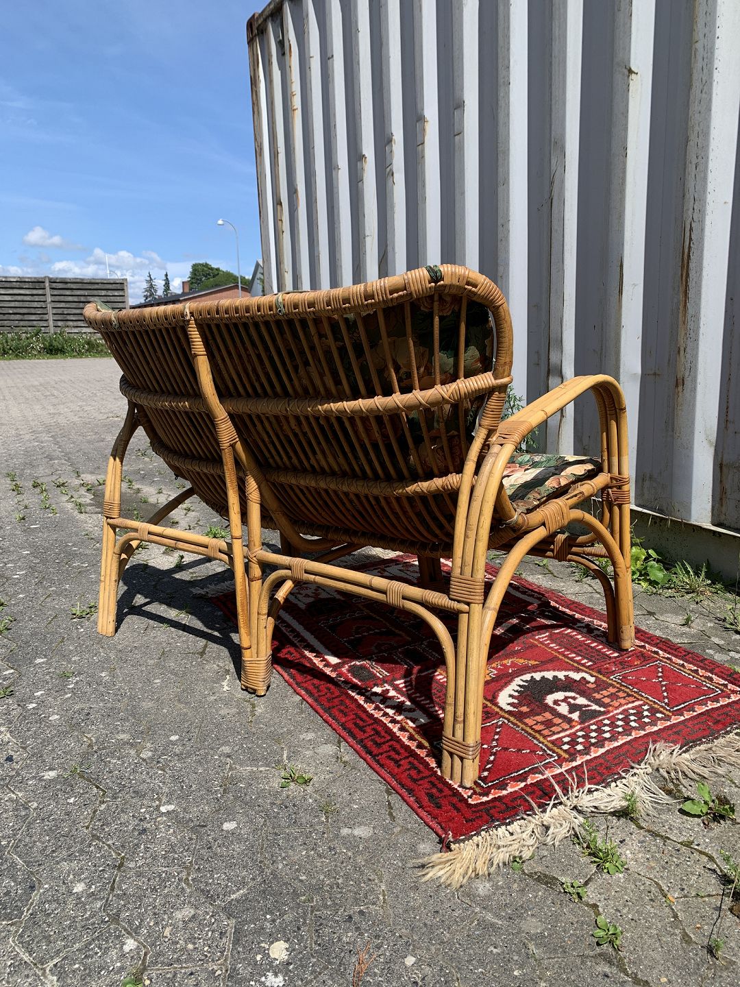 Bambus sofa med hynde, fra 1960-1970erne. Den har brugsspor og små defekter. Ryghøjde 85cm Sædehøjde 42cm Bredde 113cm Dybde 60cm Emne nummer: 76918