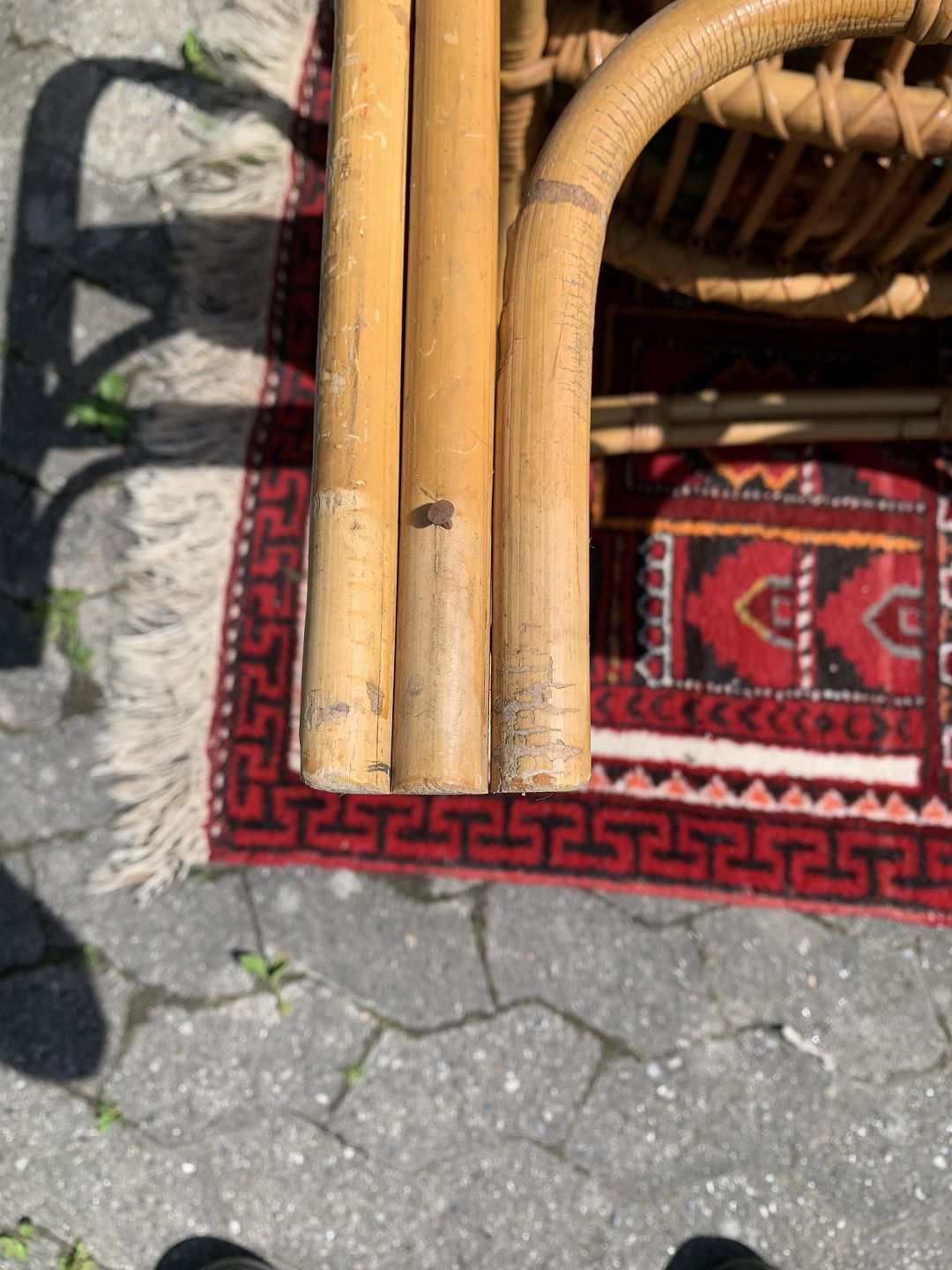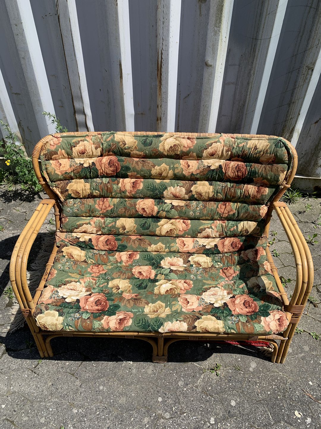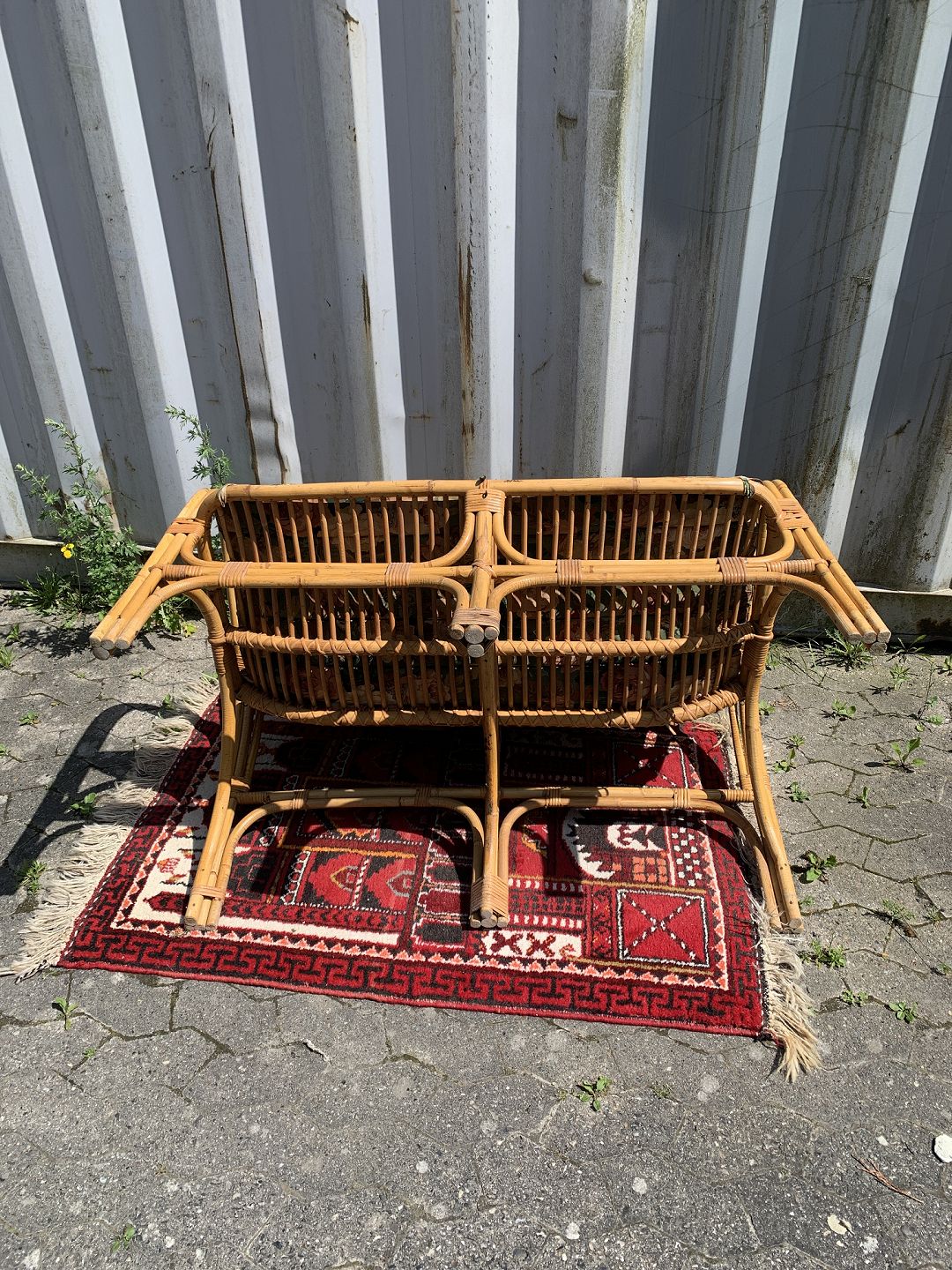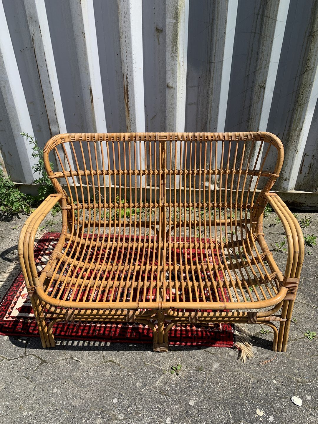 Bambus sofa med hynde, fra 1960-1970erne. Den har brugsspor og små defekter. Ryghøjde 85cm Sædehøjde 42cm Bredde 113cm Dybde 60cm Emne nummer: 76918