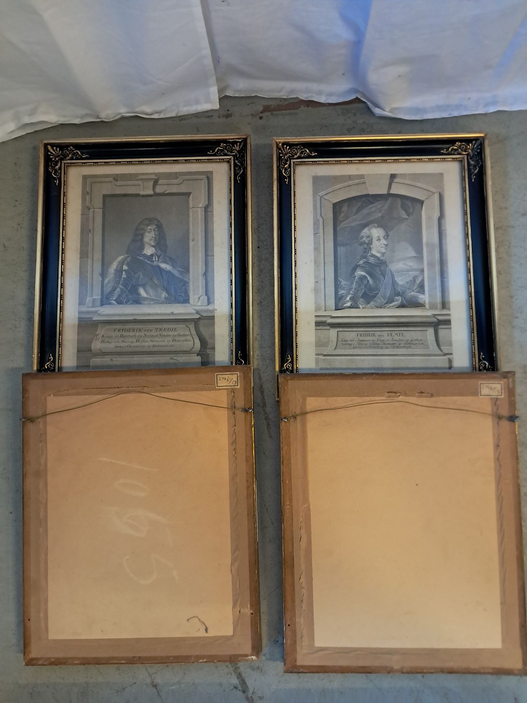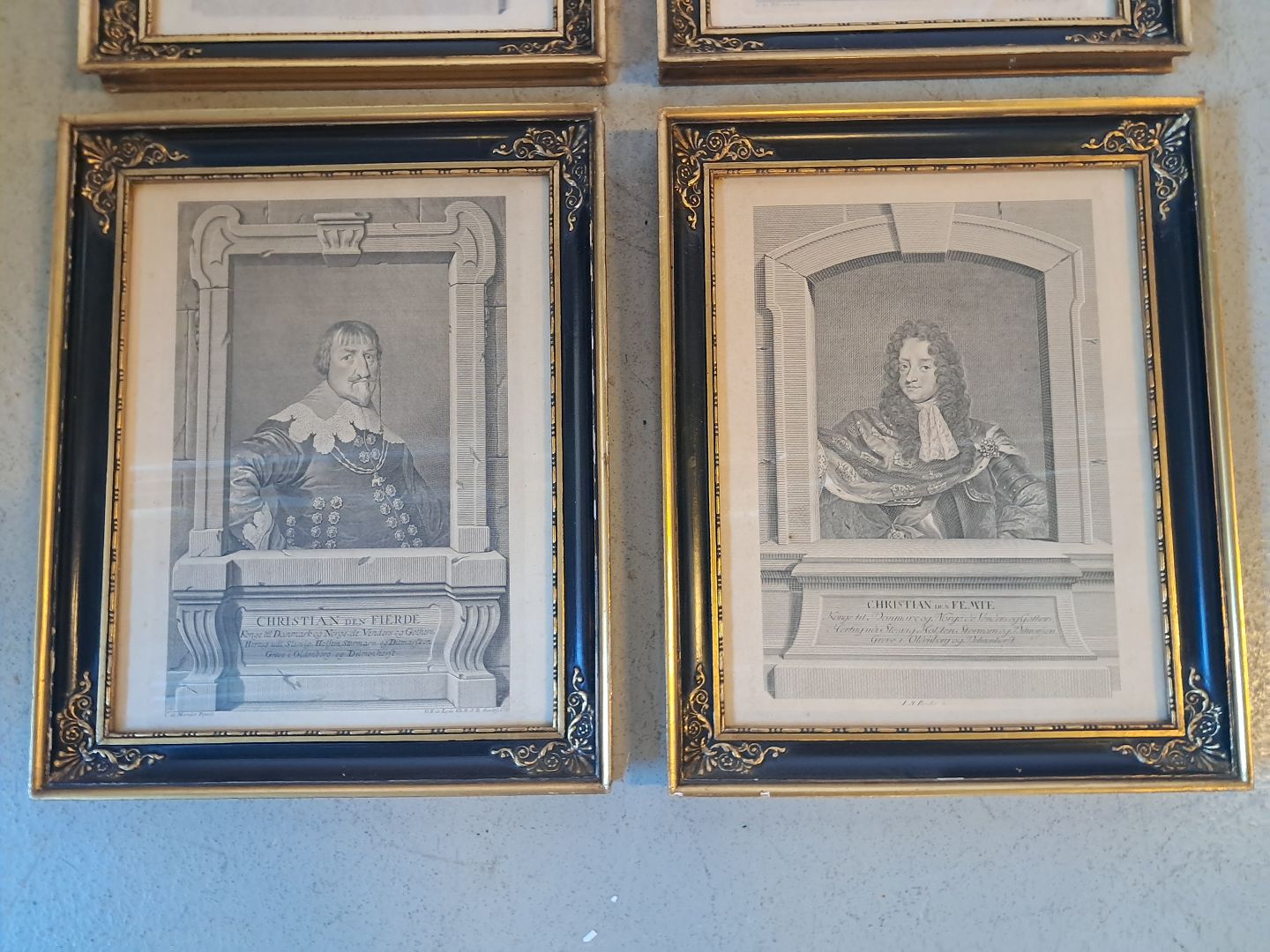 6 Billeder i guldmalet rammer af danske konger, fra 1920erne. Højde 42cm Bredde 34cm Emne nummer: 76940
