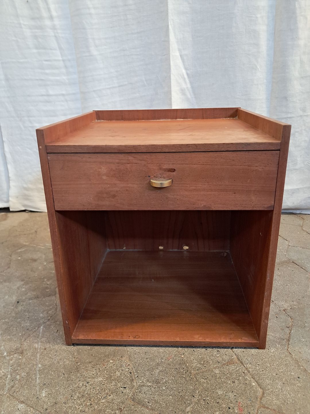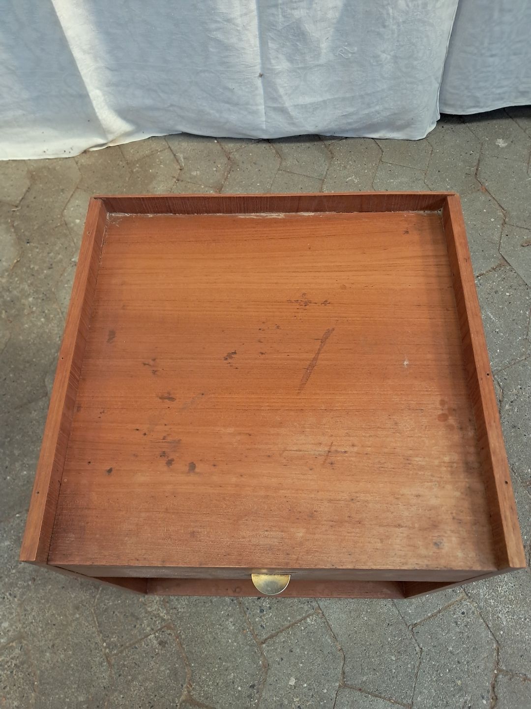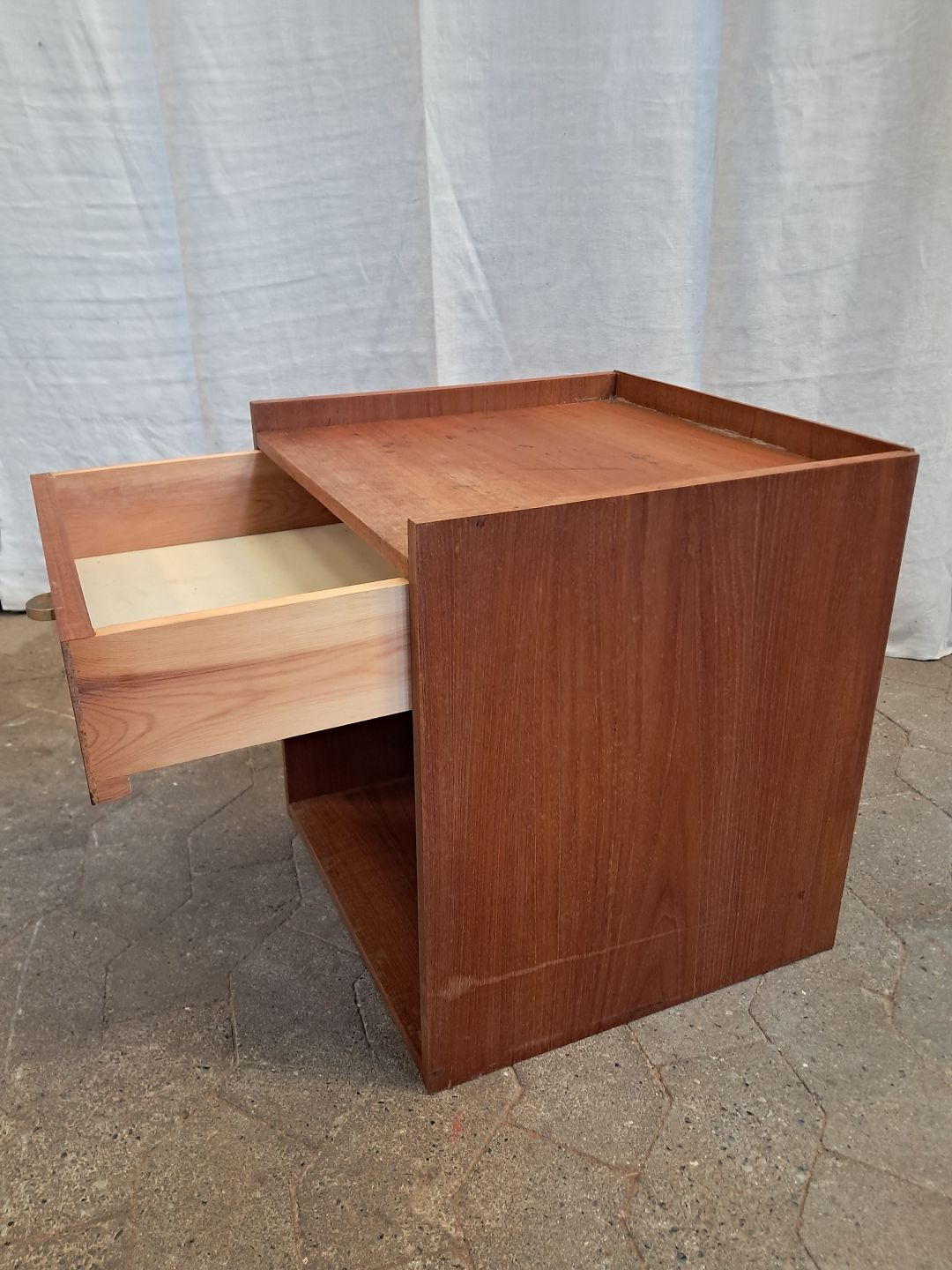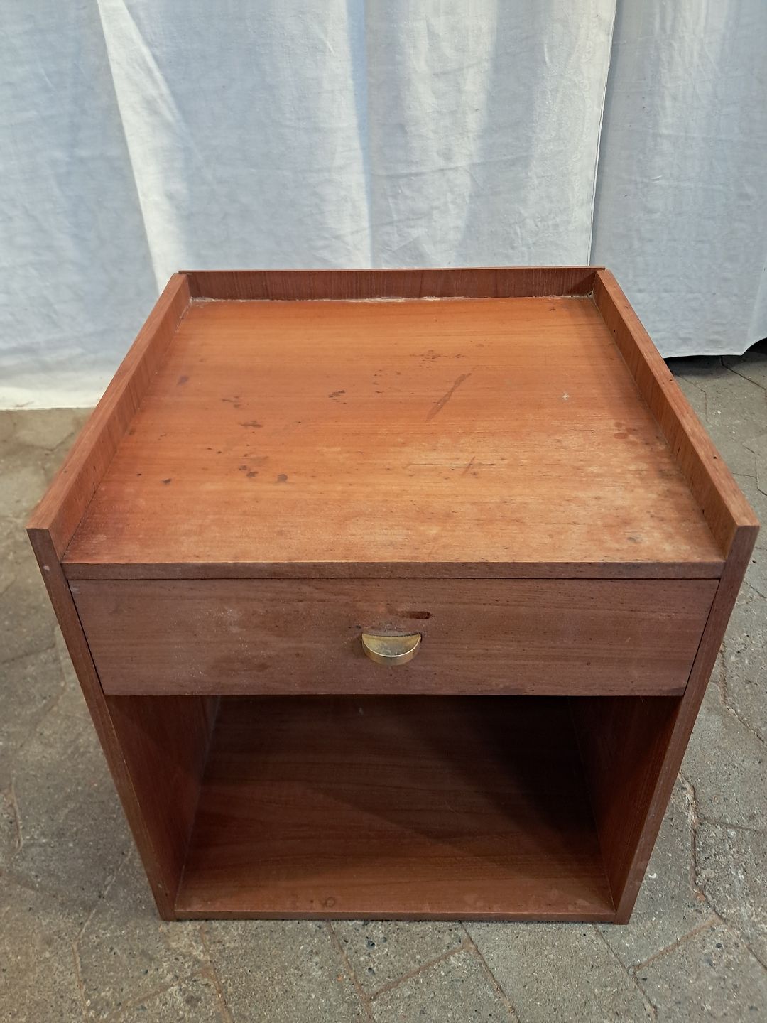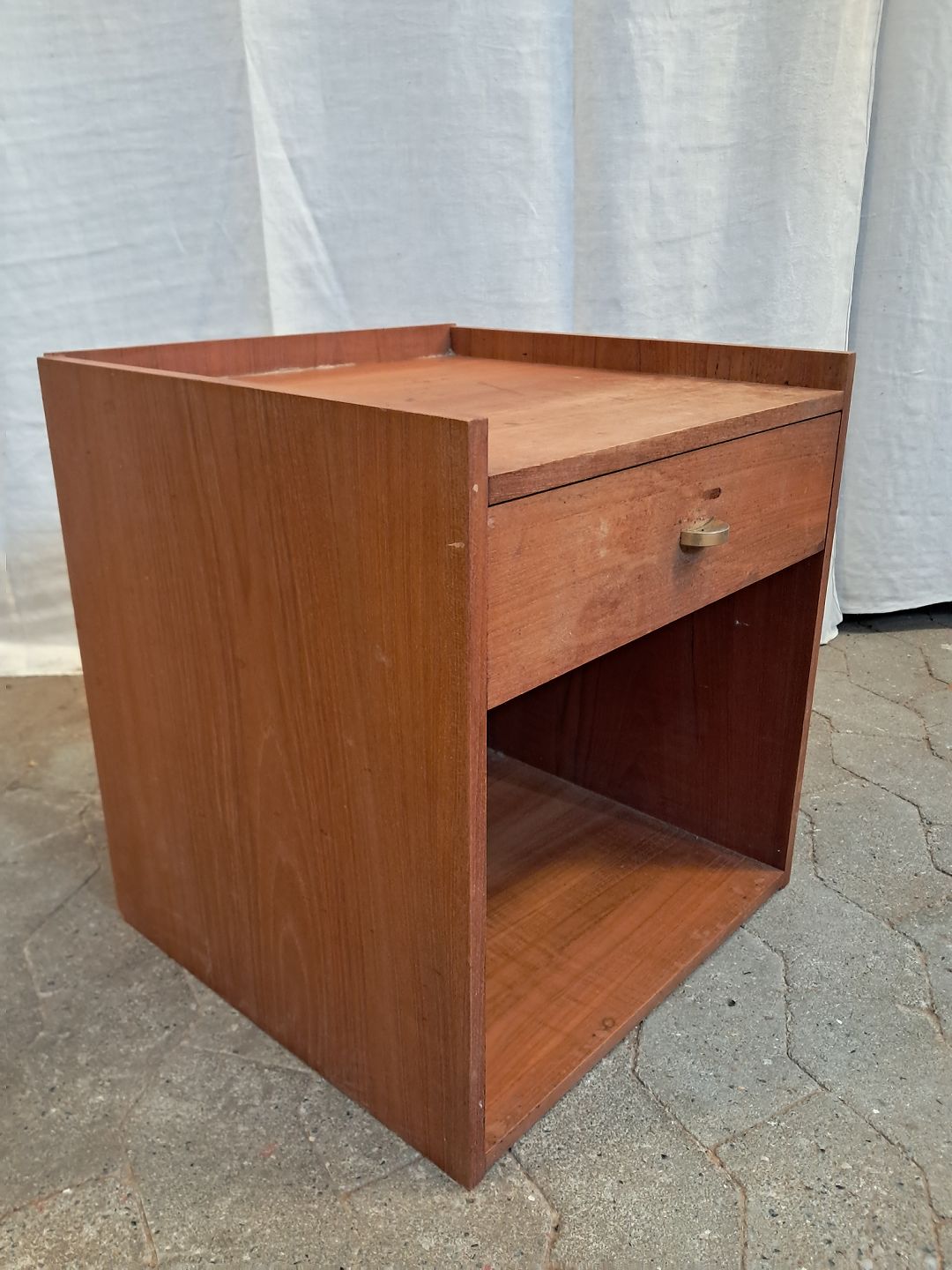 Lille skuffemøbel i fineret teaktræ, fra 1960erne. Det har brugsspor. Højde 44cm Bredde 40cm Dybde 38cm Emne nummer: 91870