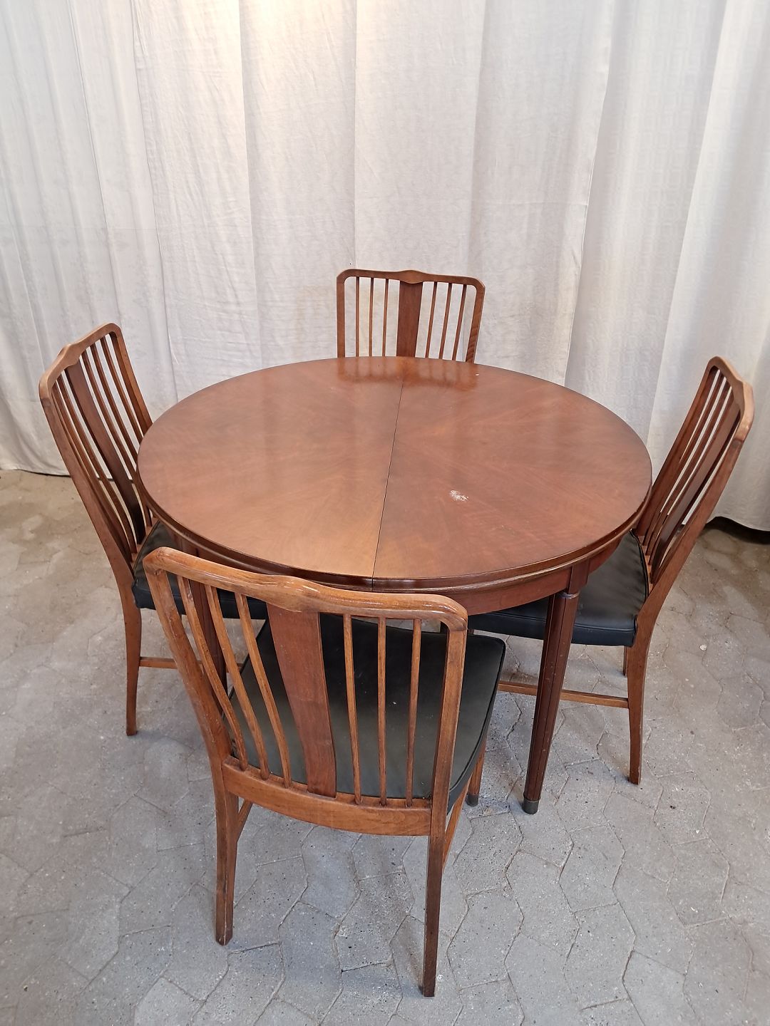 og 4 stole i nødetræ med kunstlæder betræk, fra 1950erne.