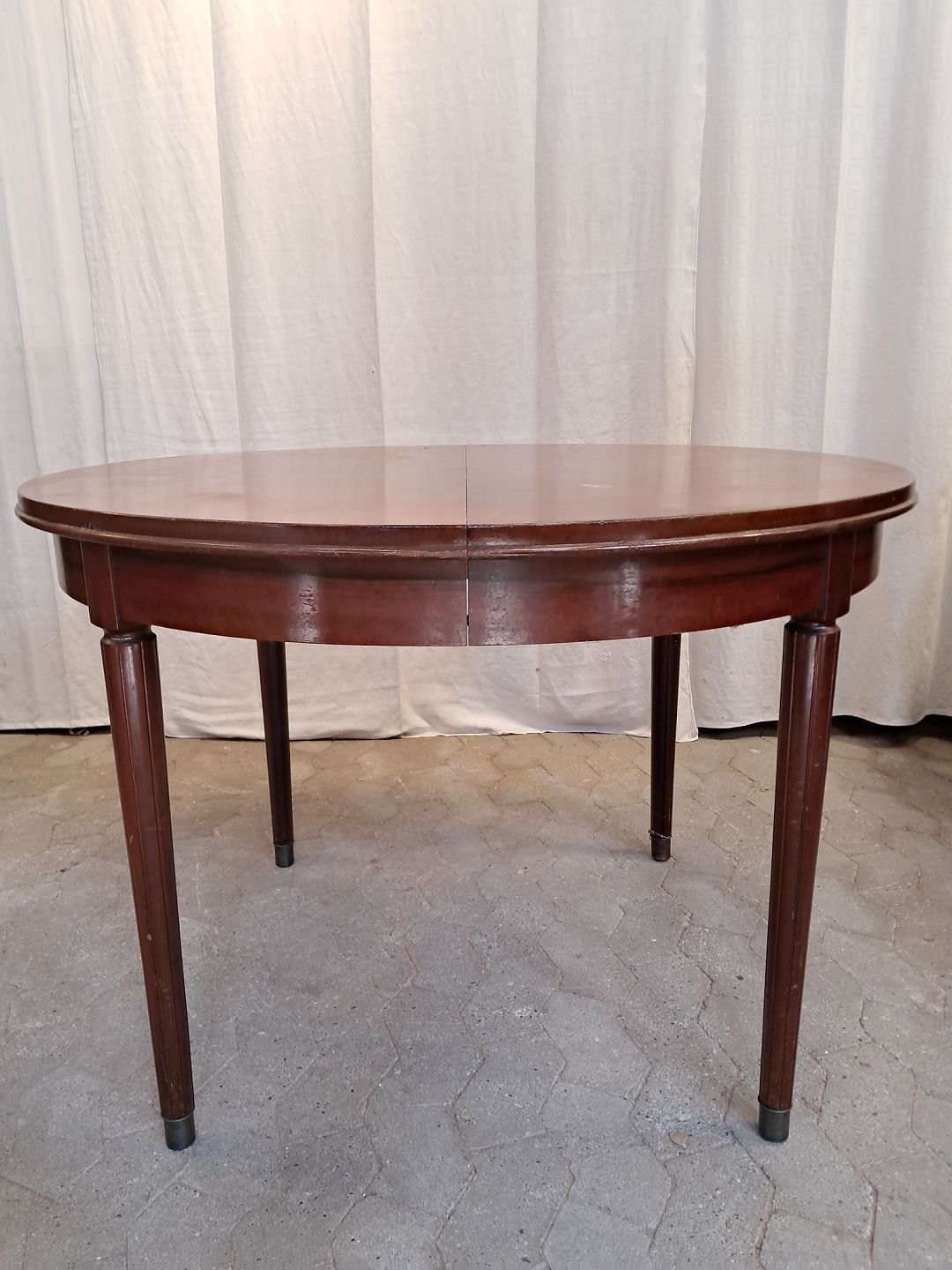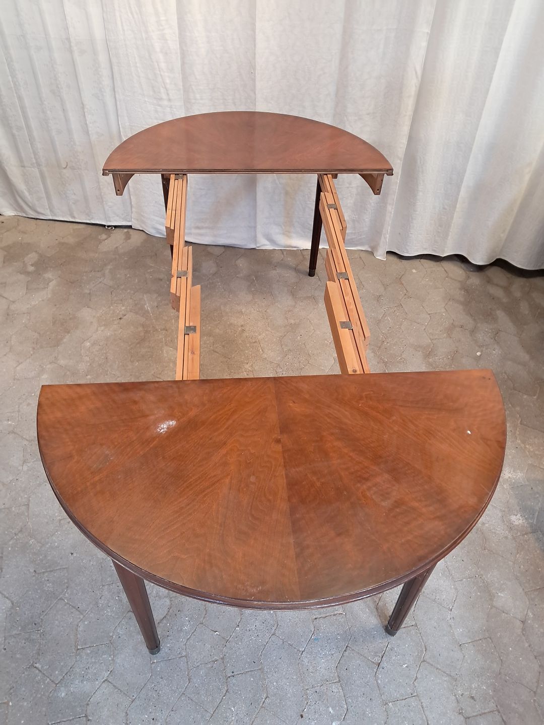 Rundt spisebord i fineret nødetræ med 3 tillægsplader,