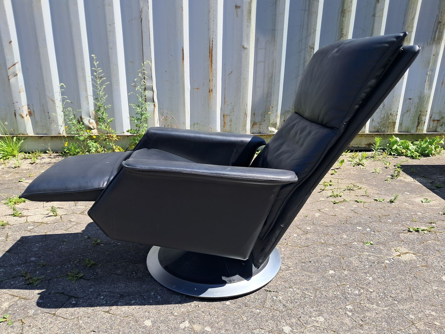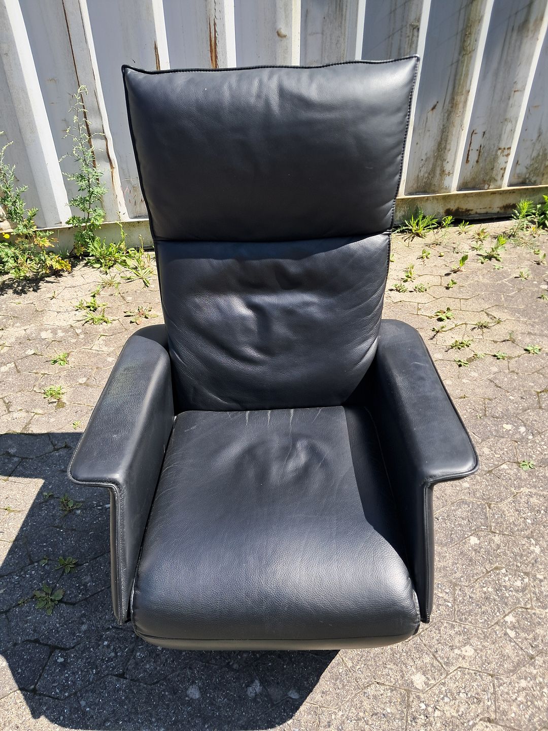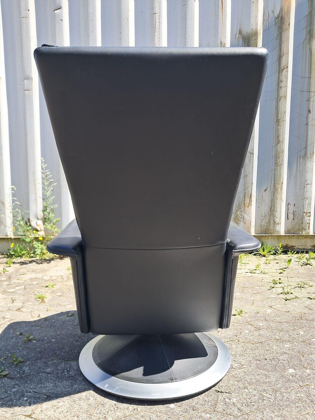 Læder lænestol med fodstøtte, fra 2010erne. Den har brugsspor. Ryghøjder 105cm Sædehøjde 39cm Emne nummer: 76957