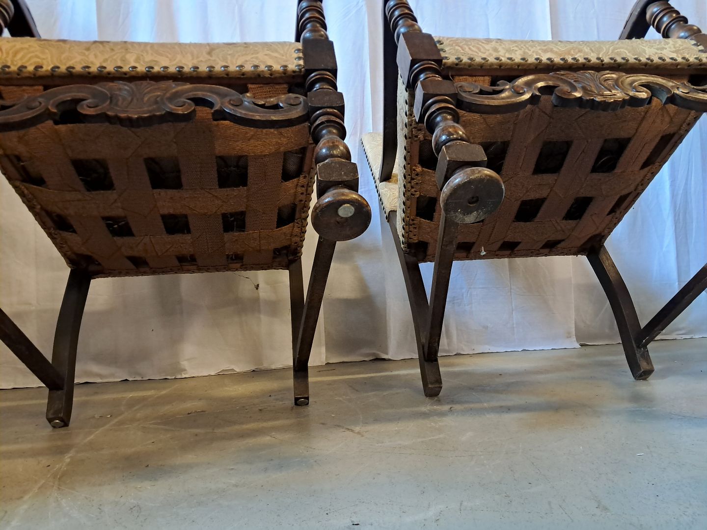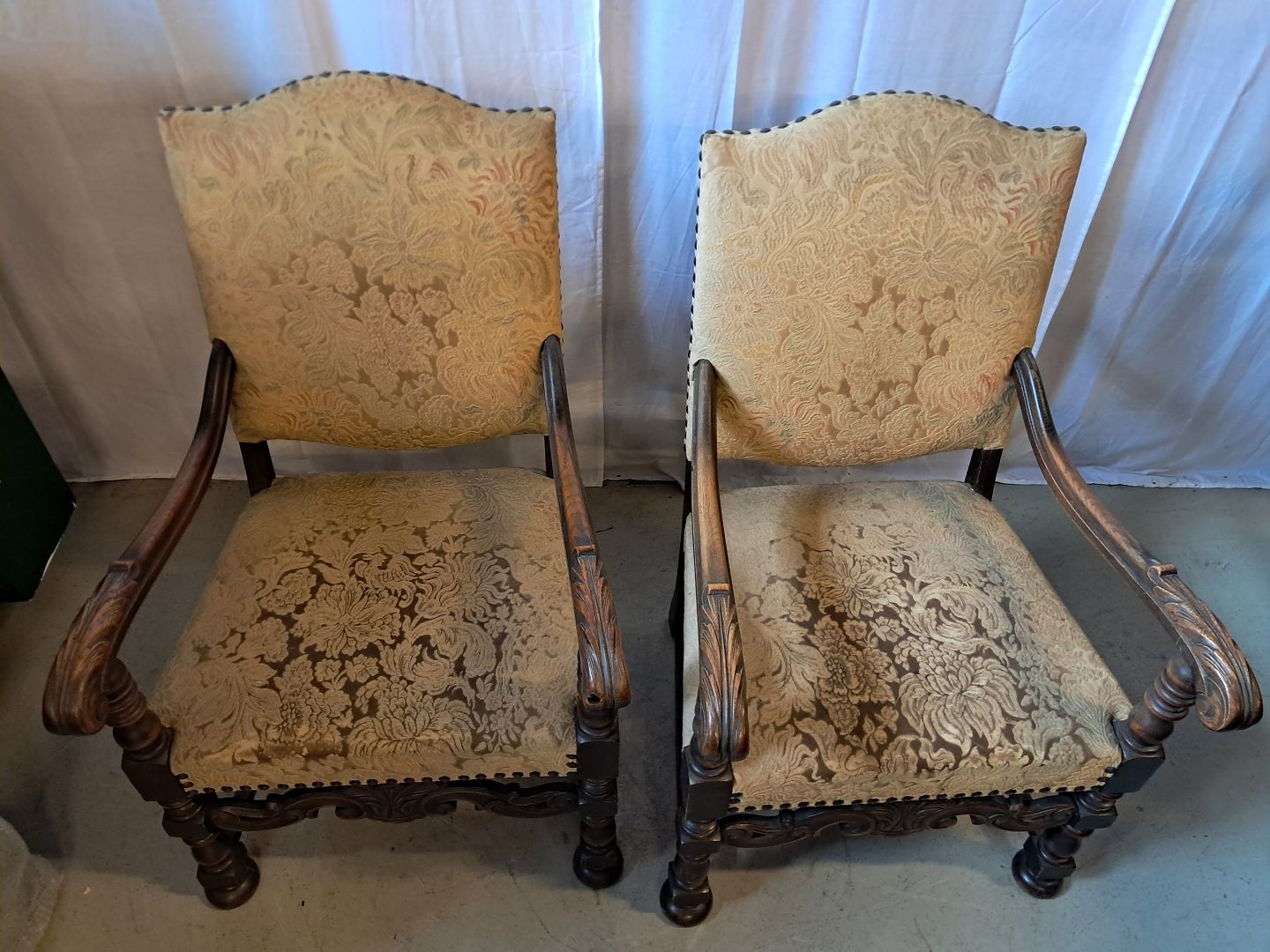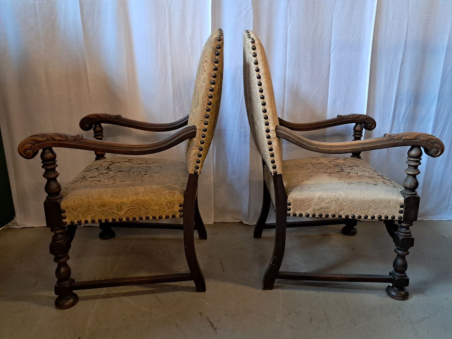 2 Armstole i massivt egetræ, fra 1920erne. De har brugsspor. Ryghøjde 107cm Sædehøjde 45cm Emne nummer: 76967