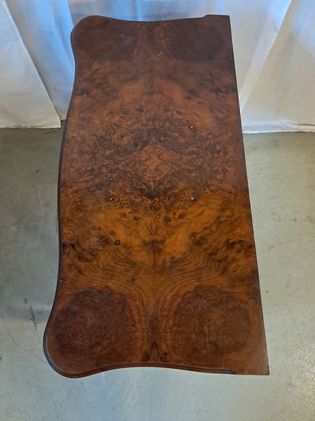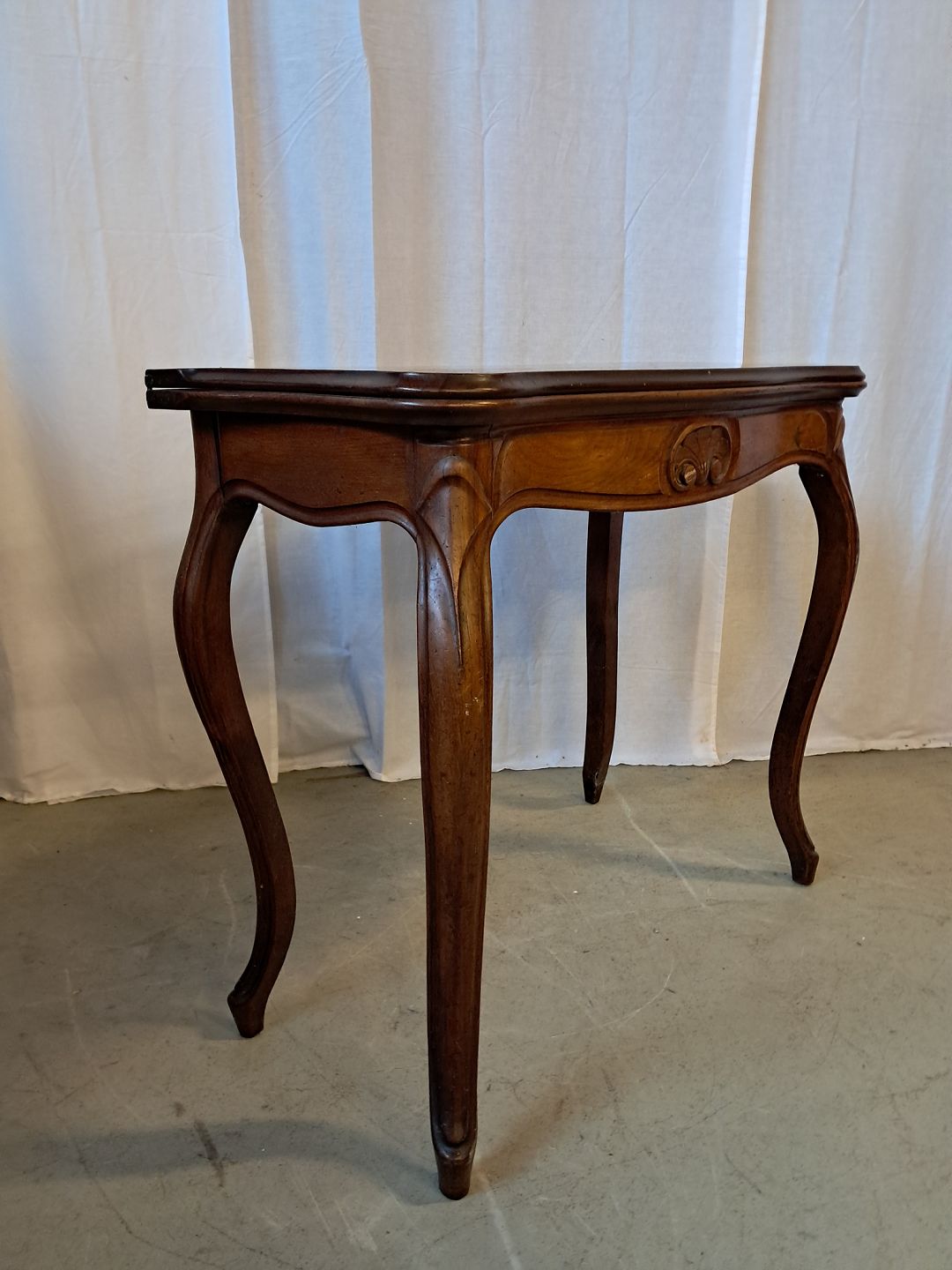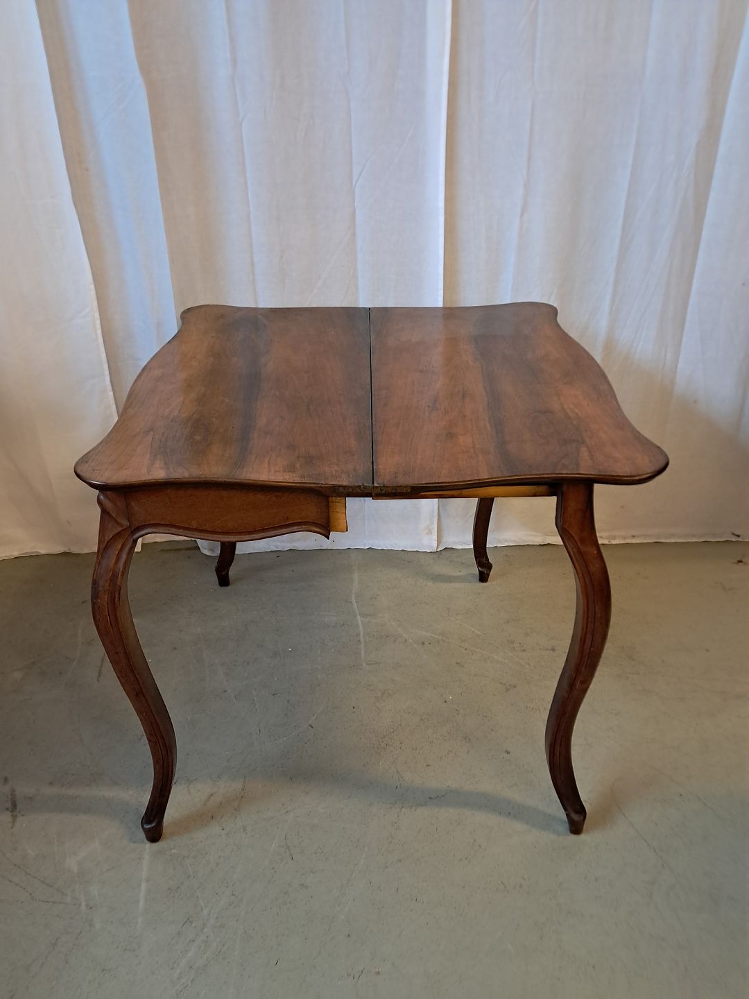 Spillebord i fineret rodtræ og mahogni, fra 1910erne. Det har brugsspor. Højde 78cm Bredde 86cm Dybde 42cm Mål på bordpladen udslået 86cm X 84cm Emne nummer: 76987