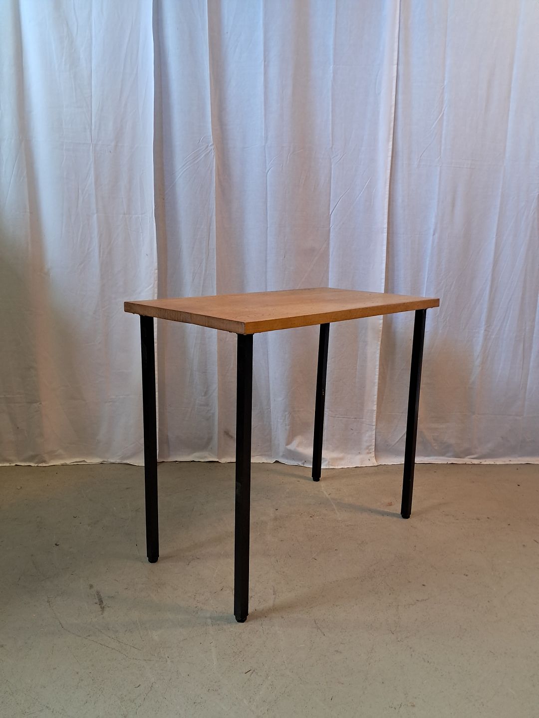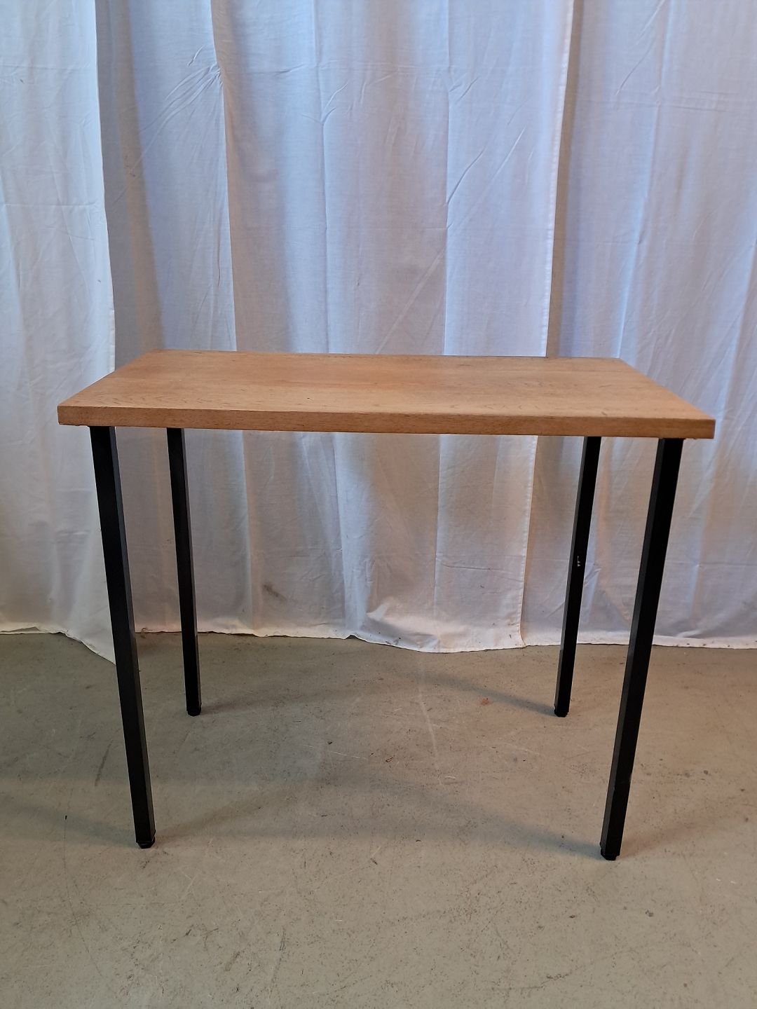 Bord i massivt egetræ med metalben, fra 1990erne. Det har brugsspor. Højde 74cm Bredde 45cm Længde 84cm Emne nummer: 77076