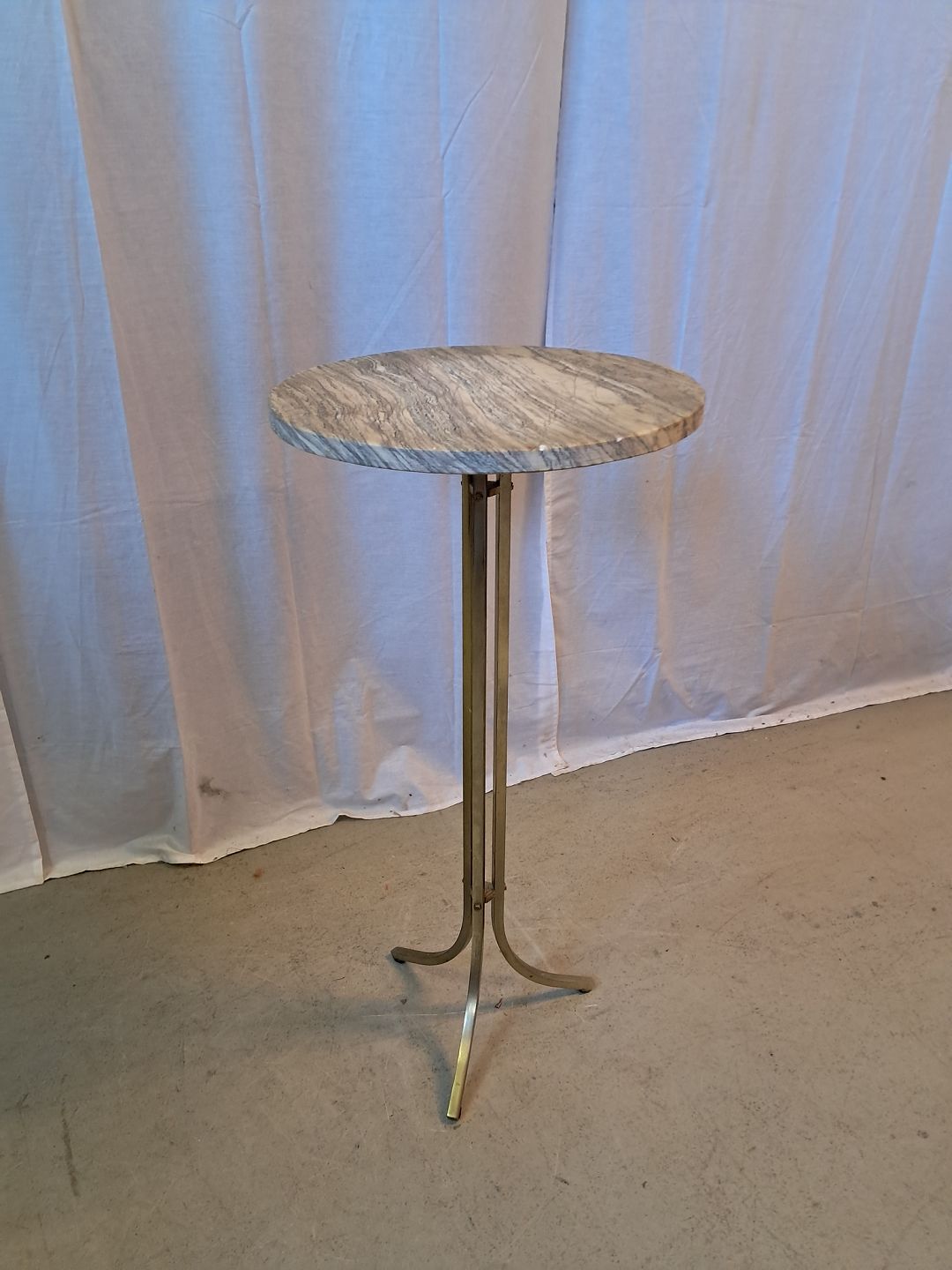 Bord med metalstel og marmorplade, fra 1980erne. Det har brugsspor. Højde 82cm Diameter 41cm Emne nummer: 77078