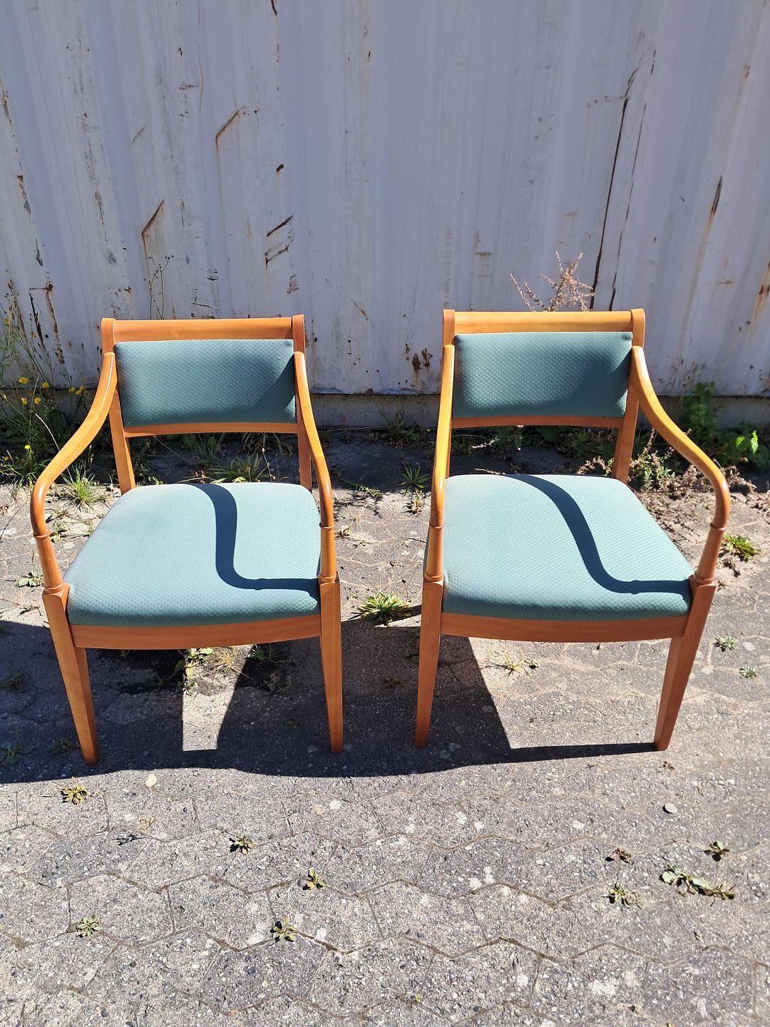 2 Stole i massivt kirsebær, fra 1990erne. De har brugsspor. Ryghøjde 85cm Sædehøjde 45cm Se emne nr. 77090 og 77088 Emne nummer: 77089