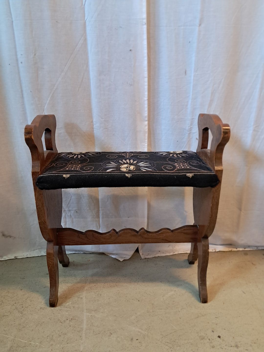 Klaverbænk i massivt egetræ, fra 1920erne. Den har brugsspor. Højde 65cm Sædehøjde 50cm Bredde 75cm Dybde 25cm Emne nummer: 77102