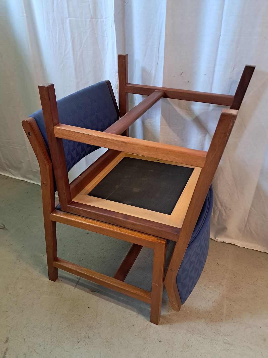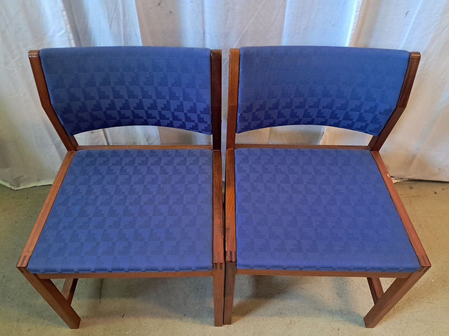 4 Stole i massivt mahogni, fra 1980erne. De har brugsspor. Ryghøjde 77cm Sædehøjde 44cm Emne nummer: 77108