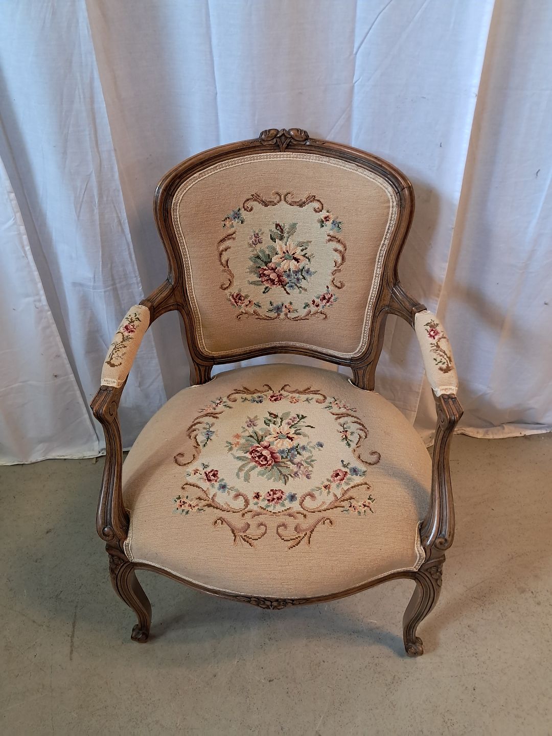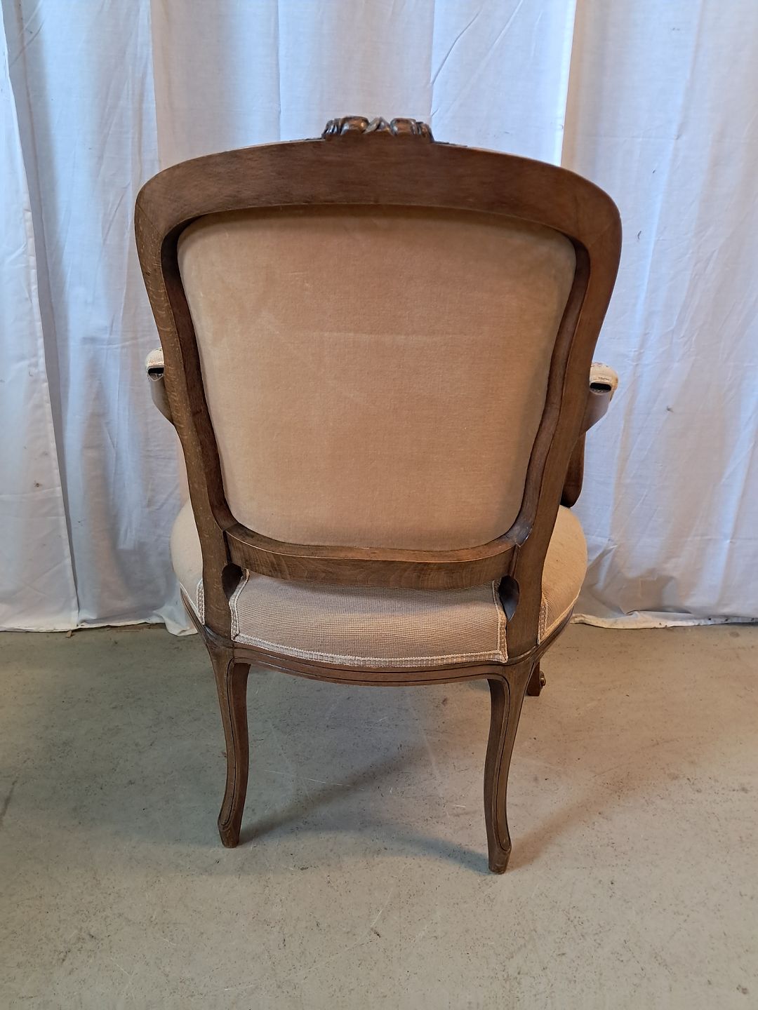 Armstol i massivt bøgetræ, fra 1950erne. Den har brugsspor. Ryghøjde 89cm Sædehøjde 44cm Emne nummer: 77111