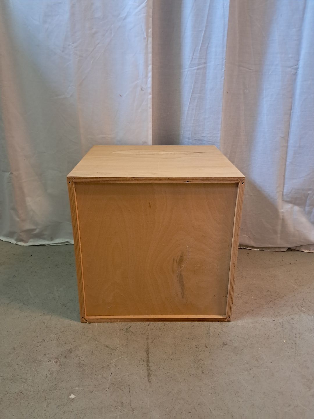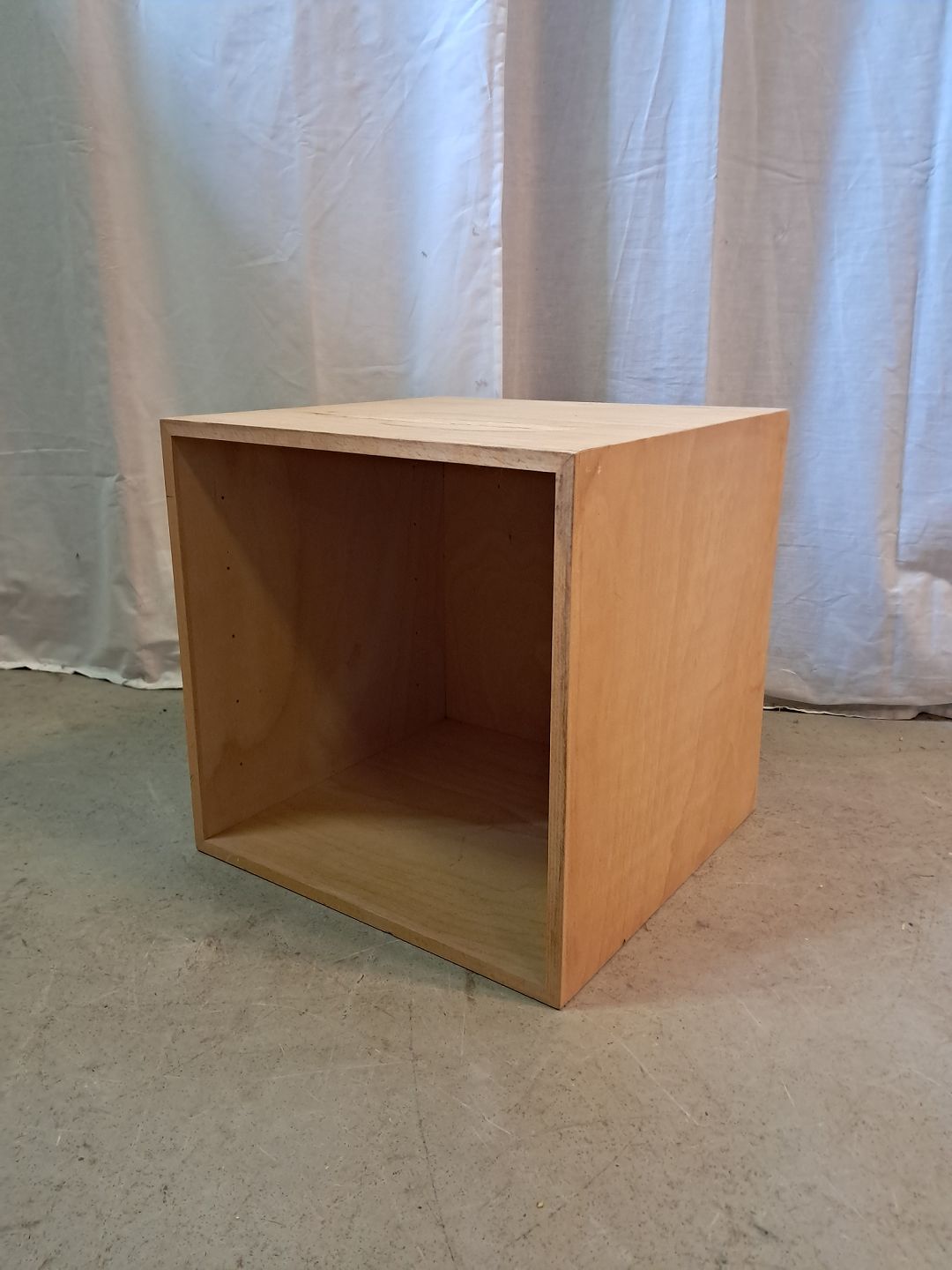 At-bo reolkasse i krydsfiner, fra 2000erne. Den har brugsspor og der medfølger ikke ophæng. Højde 35,5cm Bredde 35,5cm Dybde 34,5cm Emne nummer: 77133