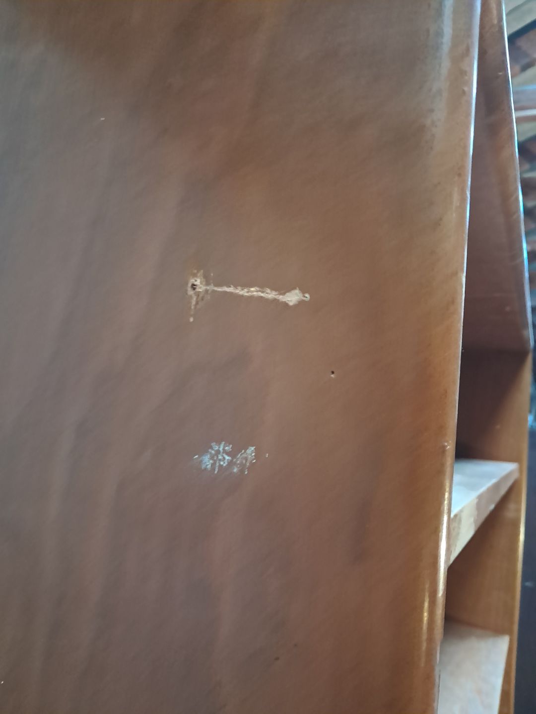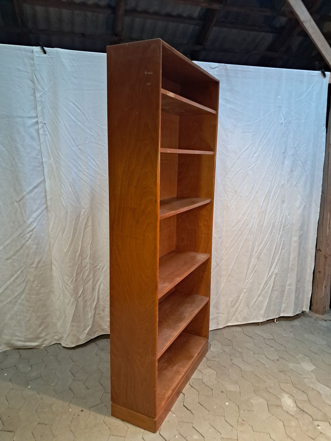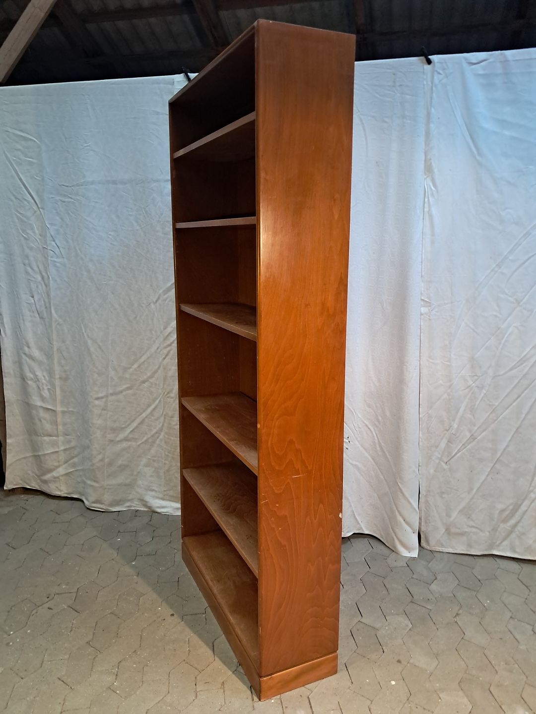 Reol i fineret bøgetræ, fra 1960erne. Den har Breugsspor. Højde 219cm Bredde 100cm Dybde 32cm Emne nummer: 91901