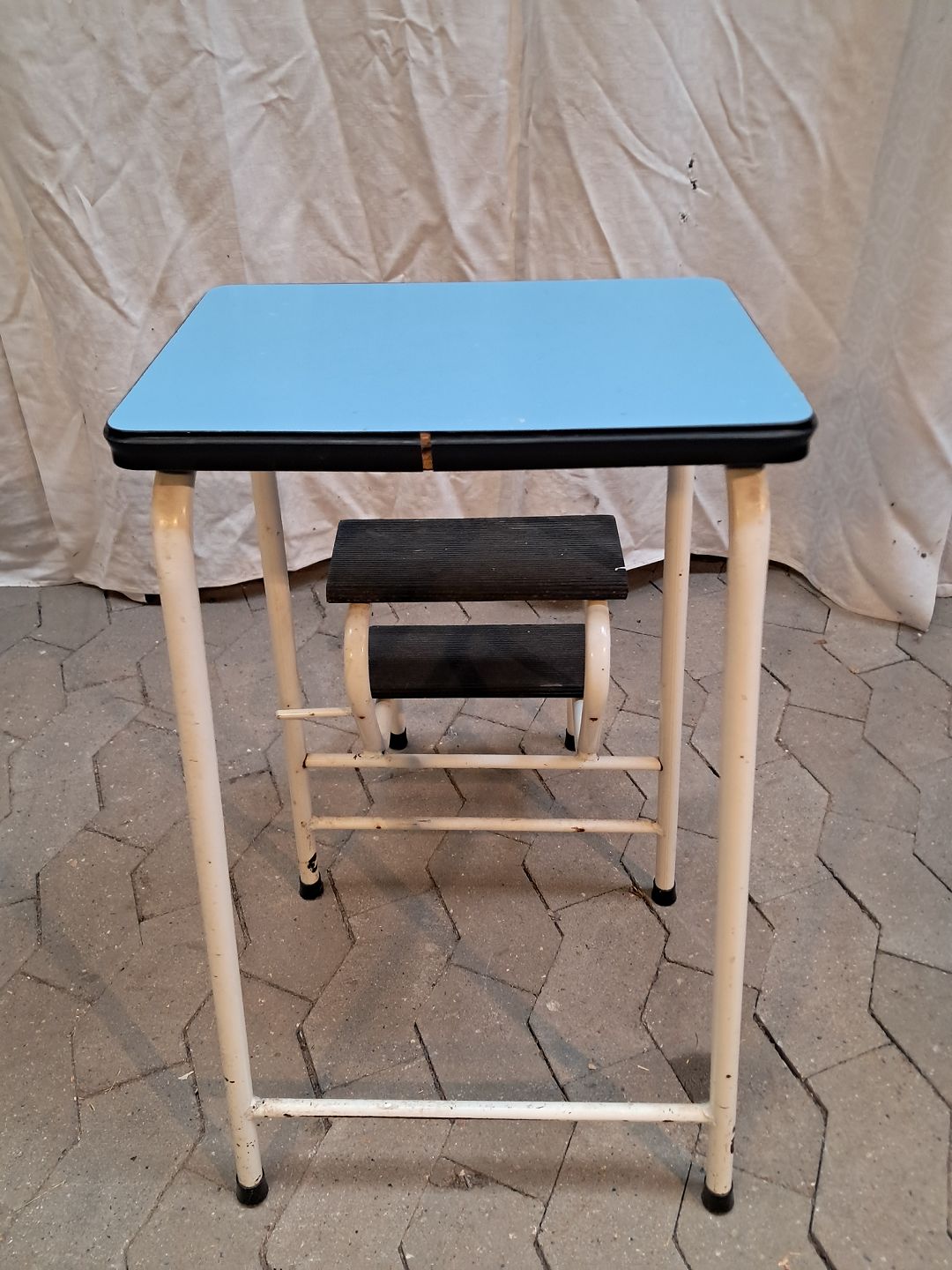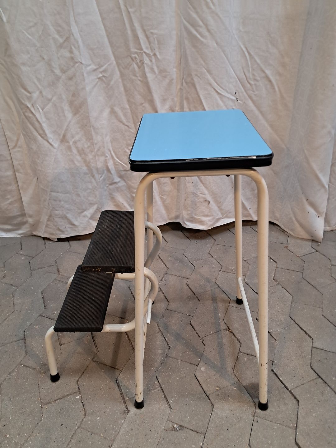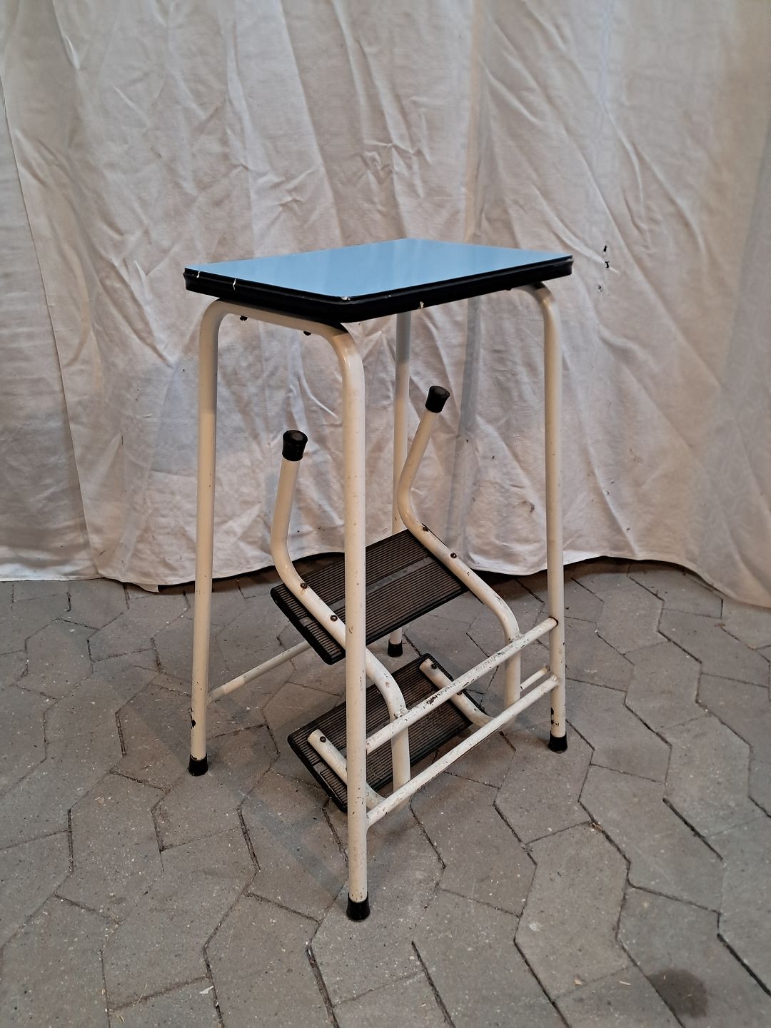 Skammel i metal, fra 1970erne. Den har brugsspor. Højde 64cm Bredde 34cm Dybde 24cm Emne nummer: 91910