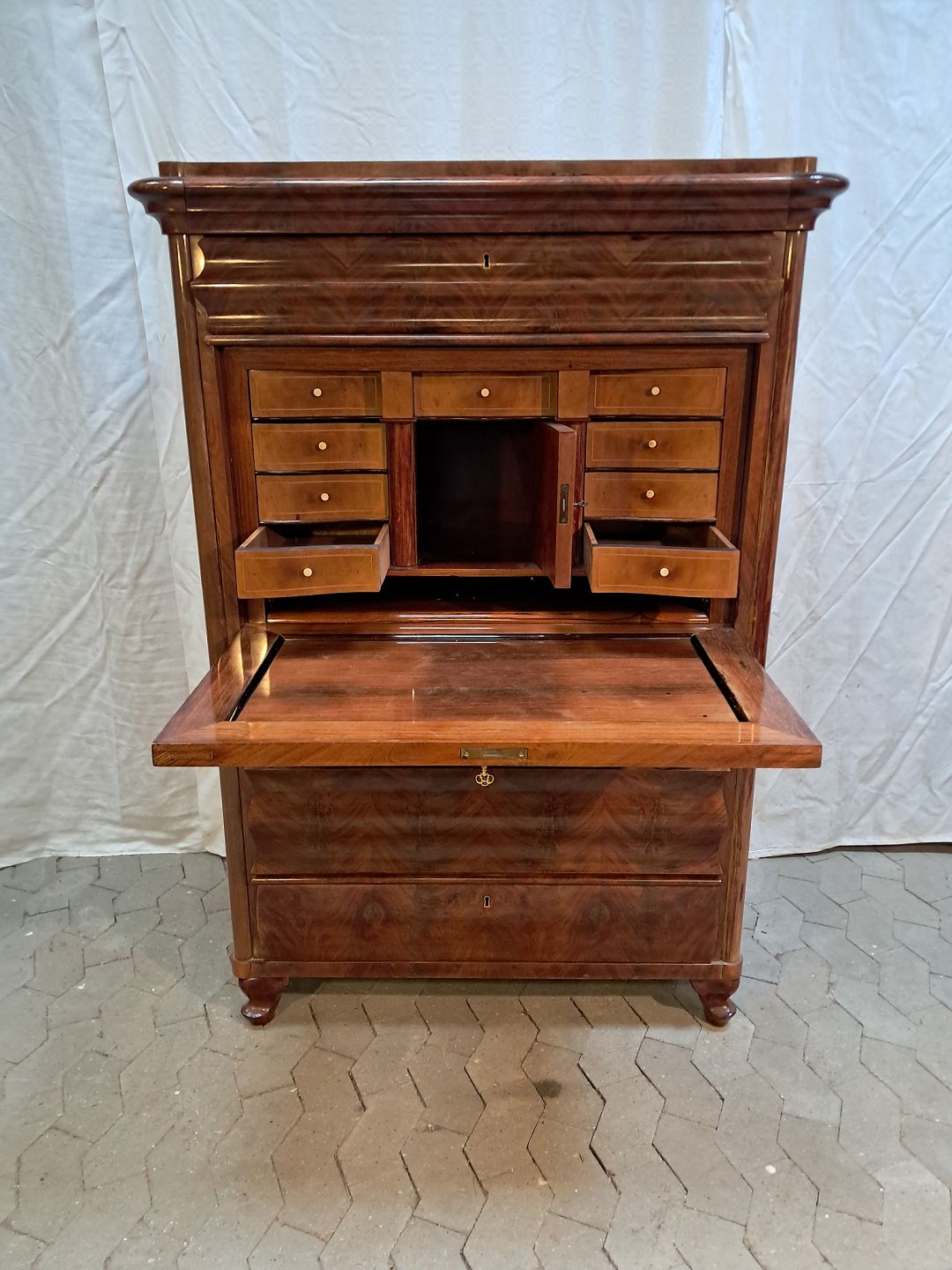 Skuffemøbel i fineret mahogni, fra 1900erne. Den har patina. Højde 153cm Bredde 106cm Dybde 56cm Emne nummer: 91911
