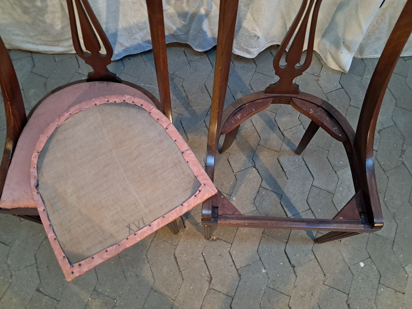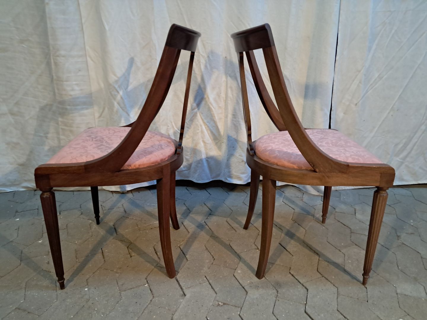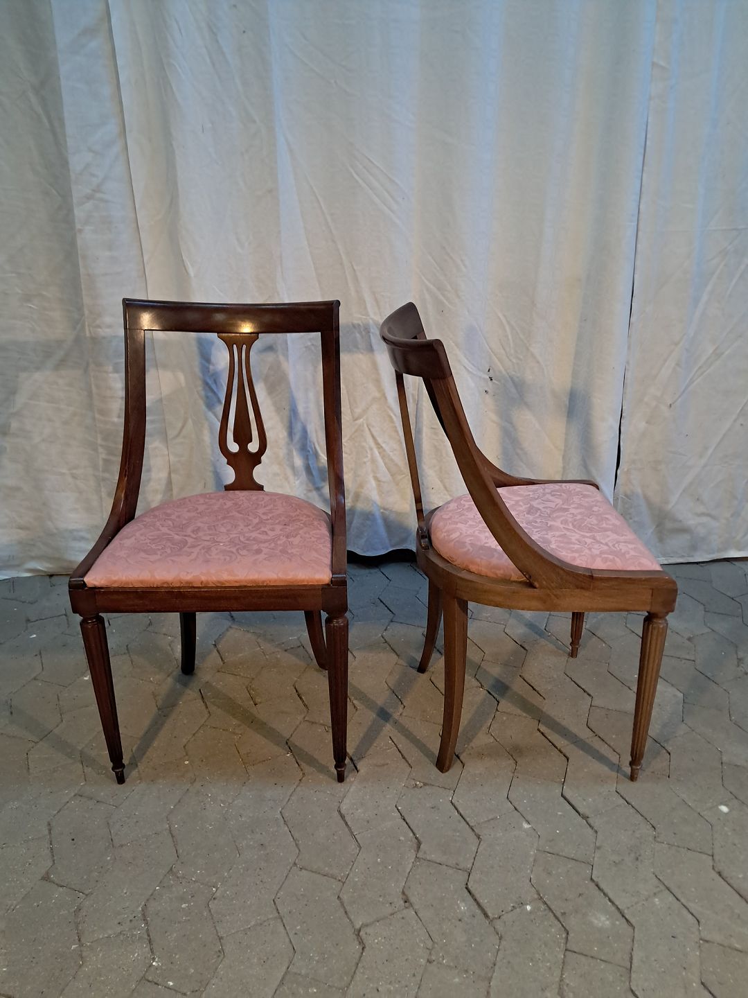 2 Salonstole i mahogni, fra 1980erne. De er lidt ledløse, men kan bruges. Ryghøjde 85cm Sædehøjde 46cm Emne nummer: 91922