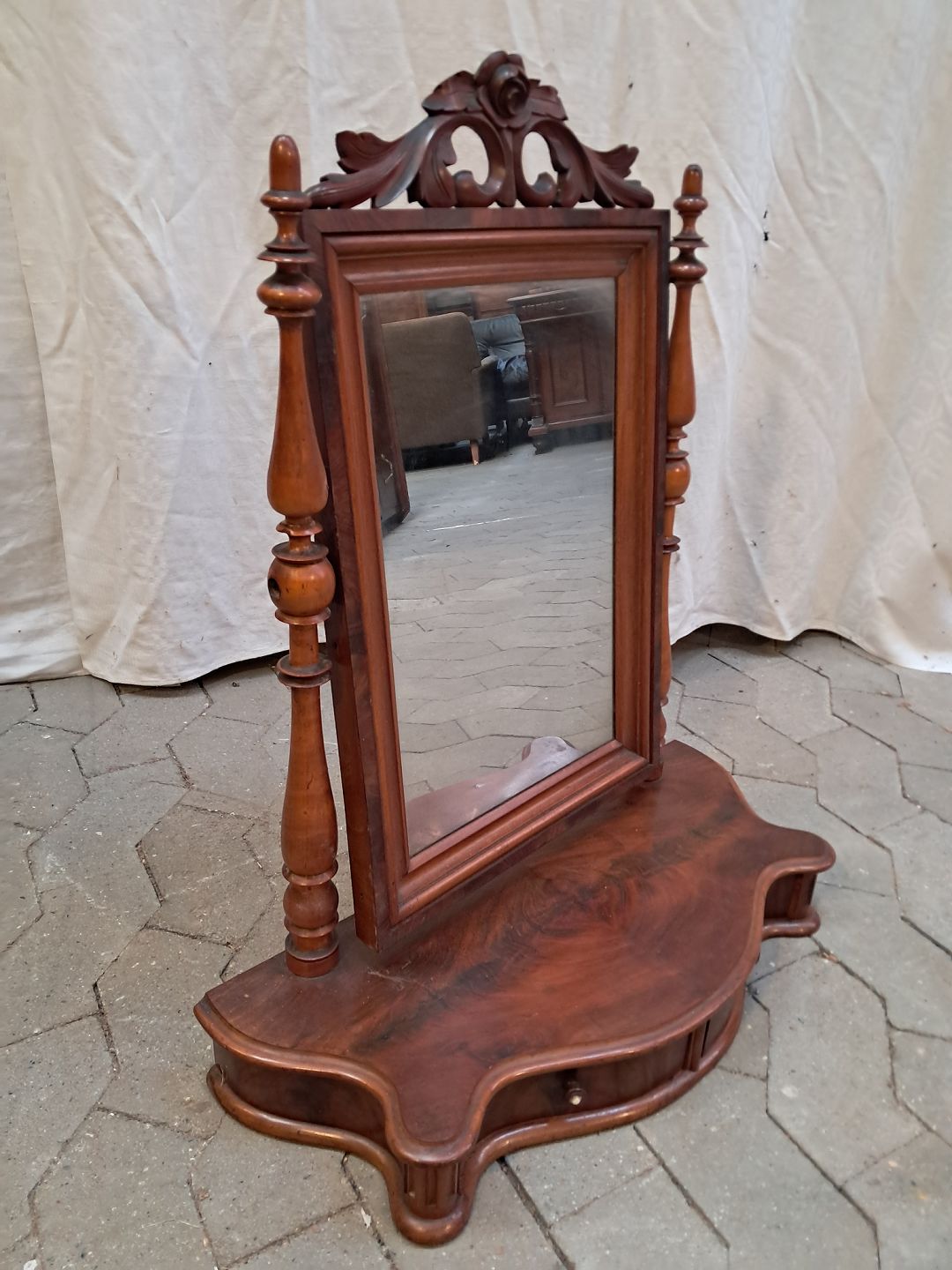 Spejl i fineret mahogni, fra 1910erne. Det har brugsspor. Højde 70cm Bredde 58cm Dybde 25cm Emne nummer: 91931