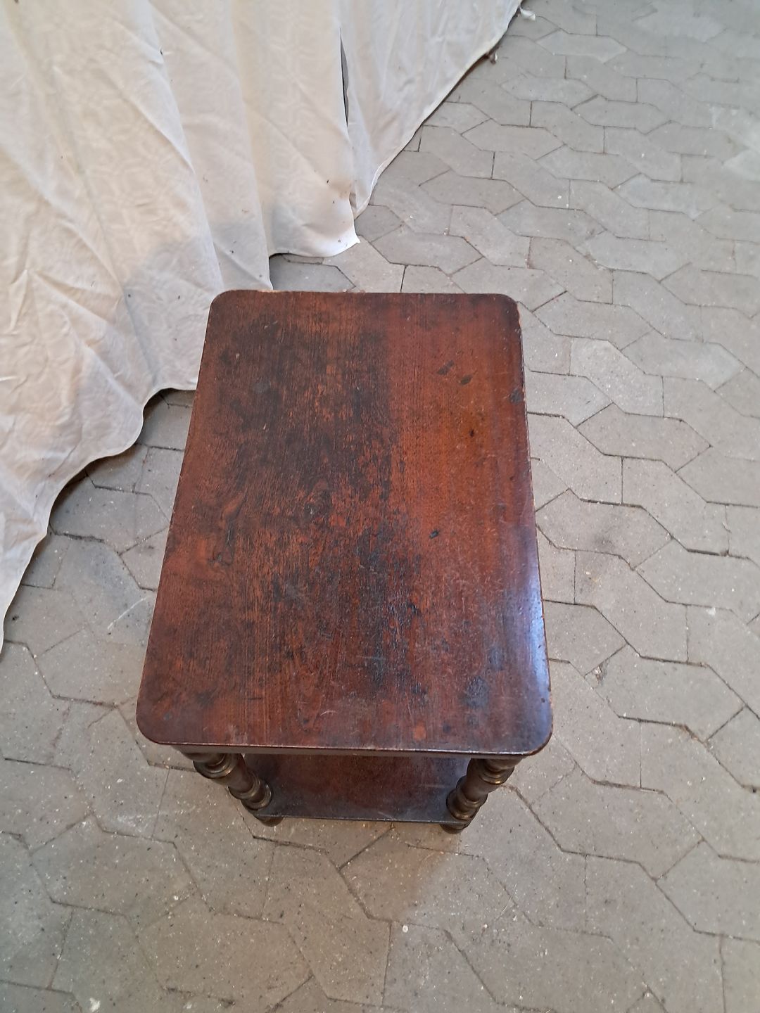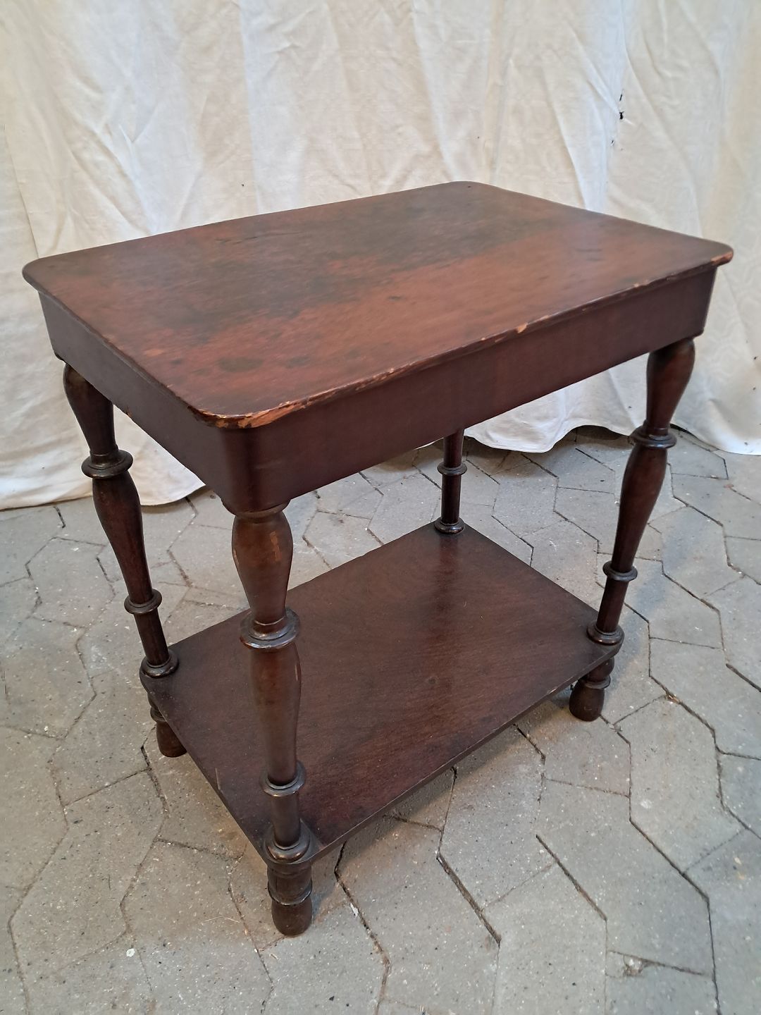 Sidebord i massivt fyrretræ og fineret bøgetræ, fra 1900erne. Det har brugsspor. Højde 56cm Bredde 50cm Dybde 33cm Emne nummer: 91932