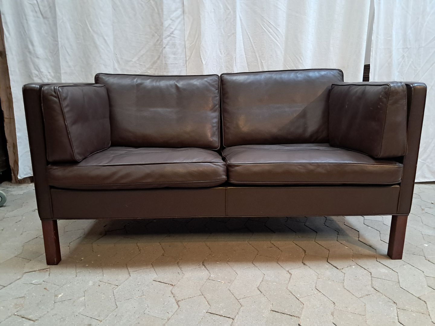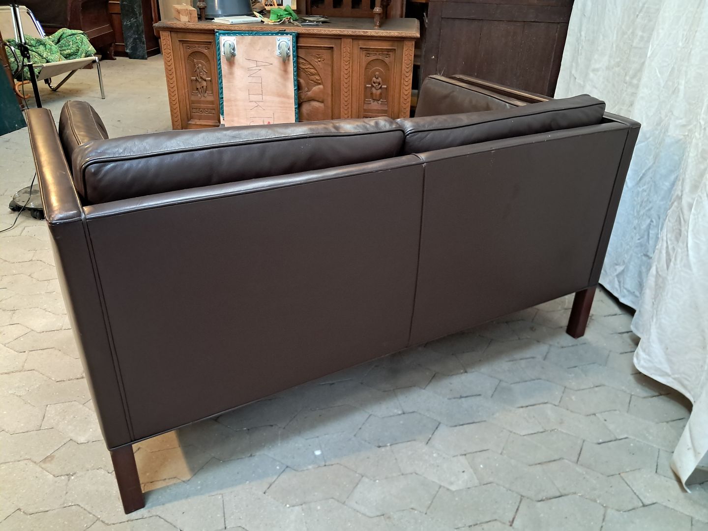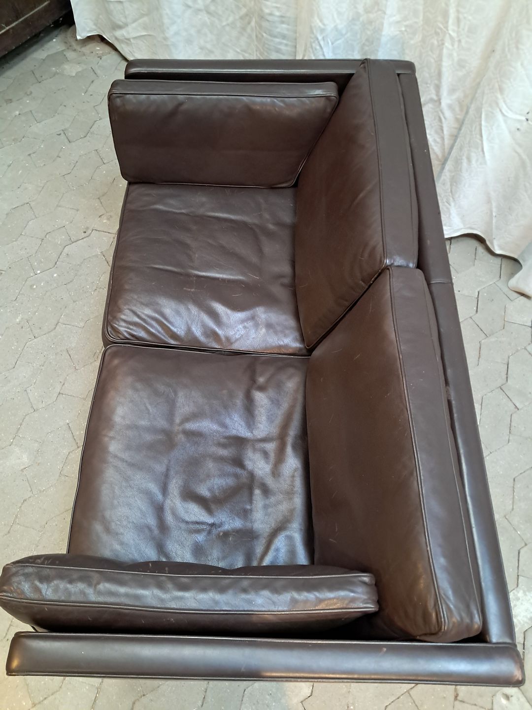 Børge Mogensen lædersofa model 2442, fra 1980erne. Den har brugsspor. Ryghøde 78cm Sædehøjde 44cm Bredde 150cm Dybde 81cm Emne nummer: 91952