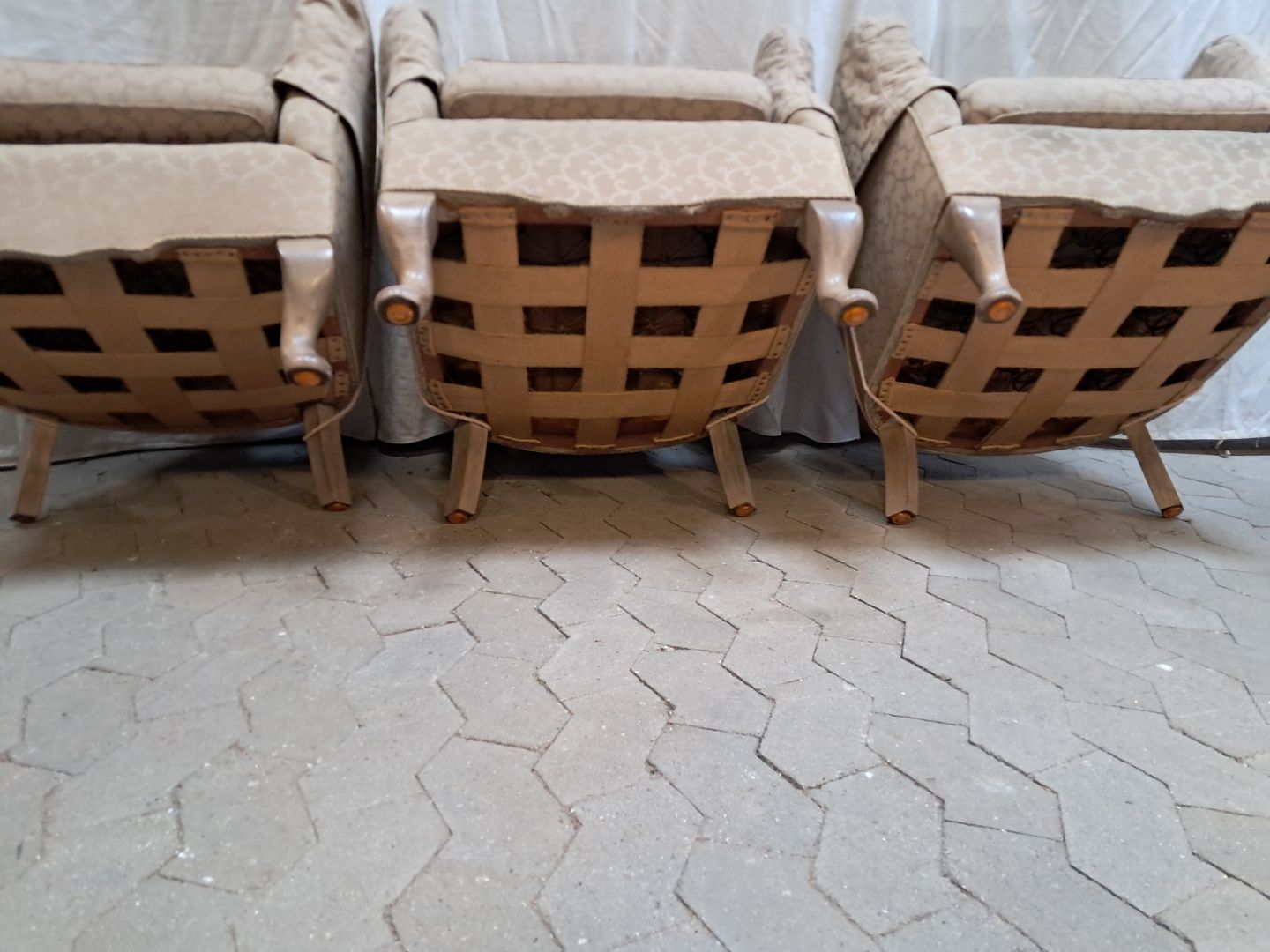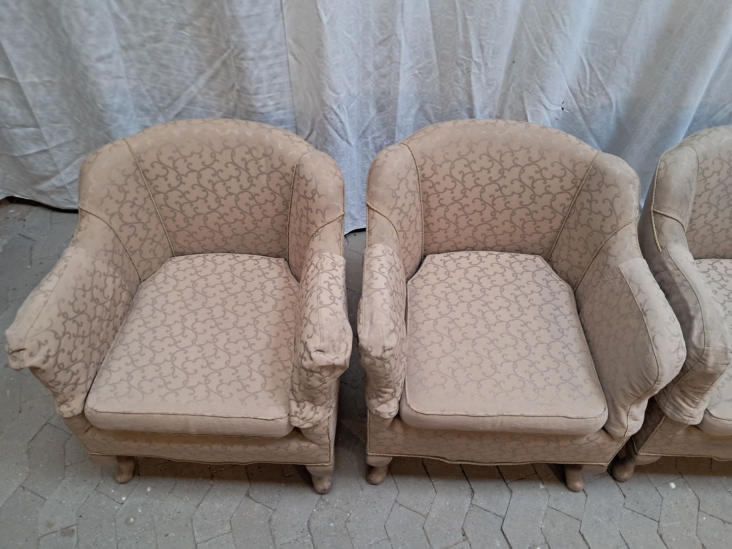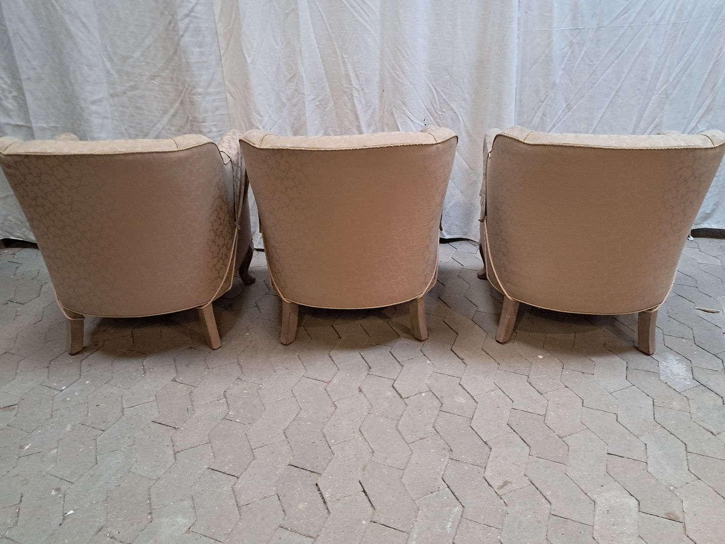 3 Lænestole med stofbetræk, fra 1920erne. De har brugsspor. Ryghøjde 74cm Sædehøjde 42cm Bredde 68cm Dybde 67cm Se emne nr. 91953 Emne nummer: 91954
