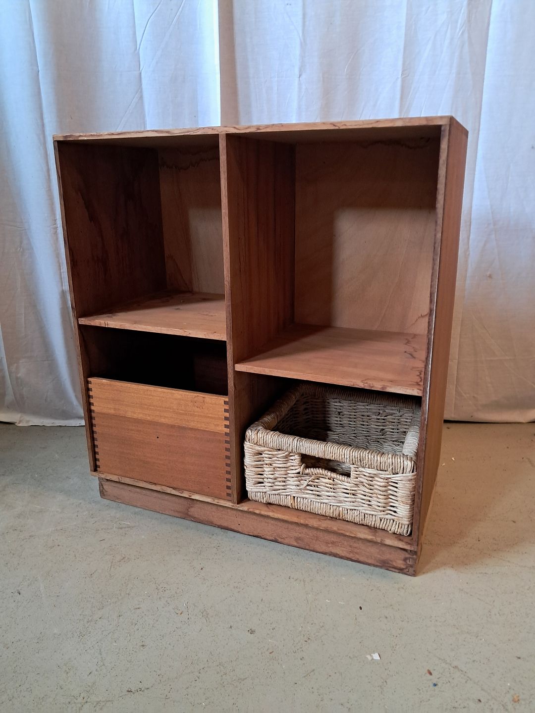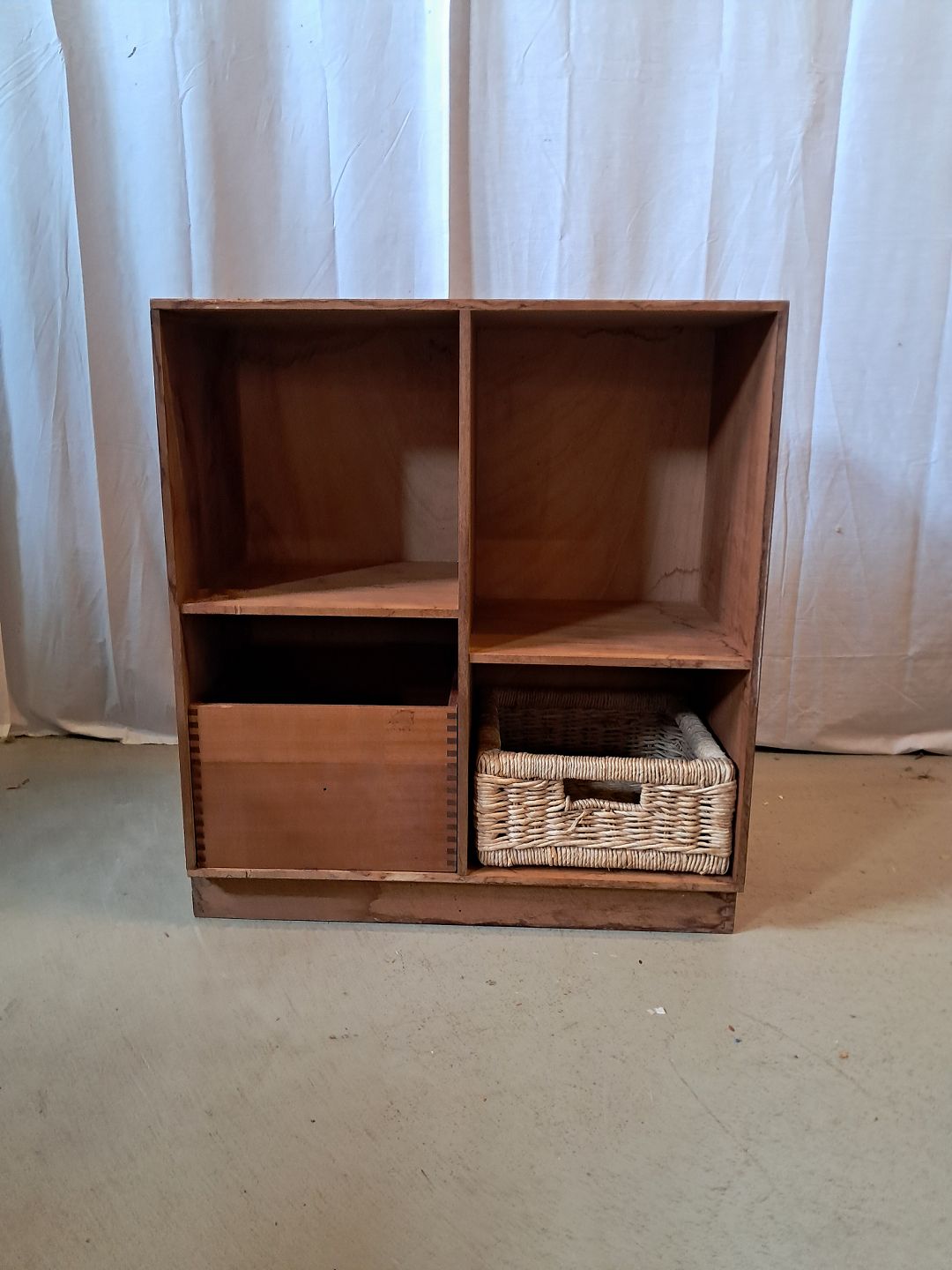 At-bo reolkasse i massiv mahogni, fra 2000erne. Der medfølger mahogni-kasse og kurv. Den har brugsspor og defekter nederst på reolen. Højde 70cm Bredde 70cm Dybde 34,5cm Sokkelhøjde 7cm Emne nummer: 77168