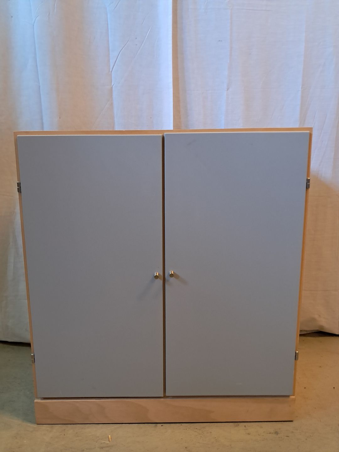 At-bo reolkasse i krydsfiner med malede låger, fra 2000erne. Den har brugsspor. Højde 70cm Bredde 70cm Dybde 34,5cm Sokkelhøjde 7cm Emne nummer: 77180