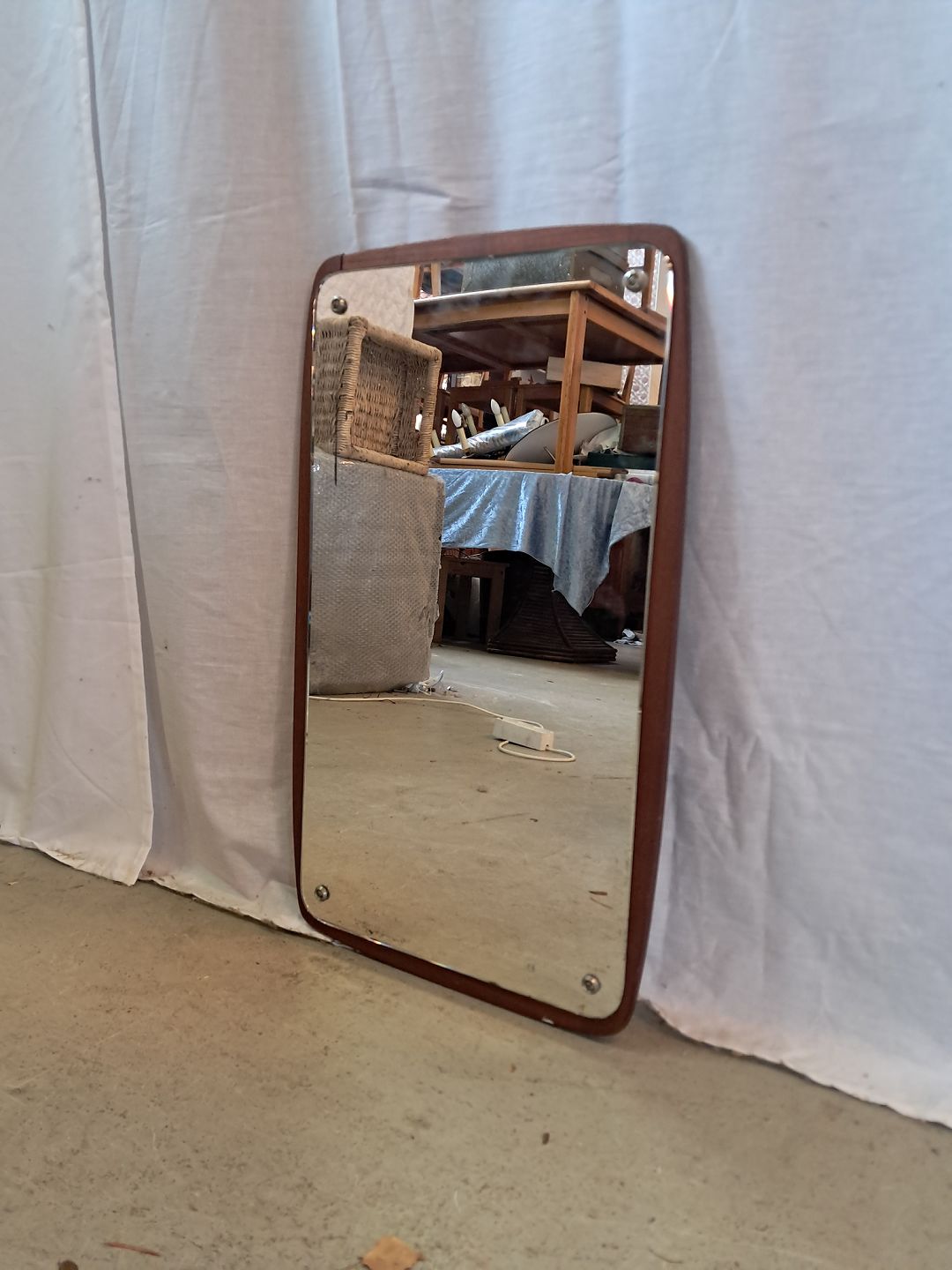 Spejl på ramme af teaktræ, fra 1960erne. Det har brugsspor. Højde 54cm Bredde 32cm Emne nummer: 77212