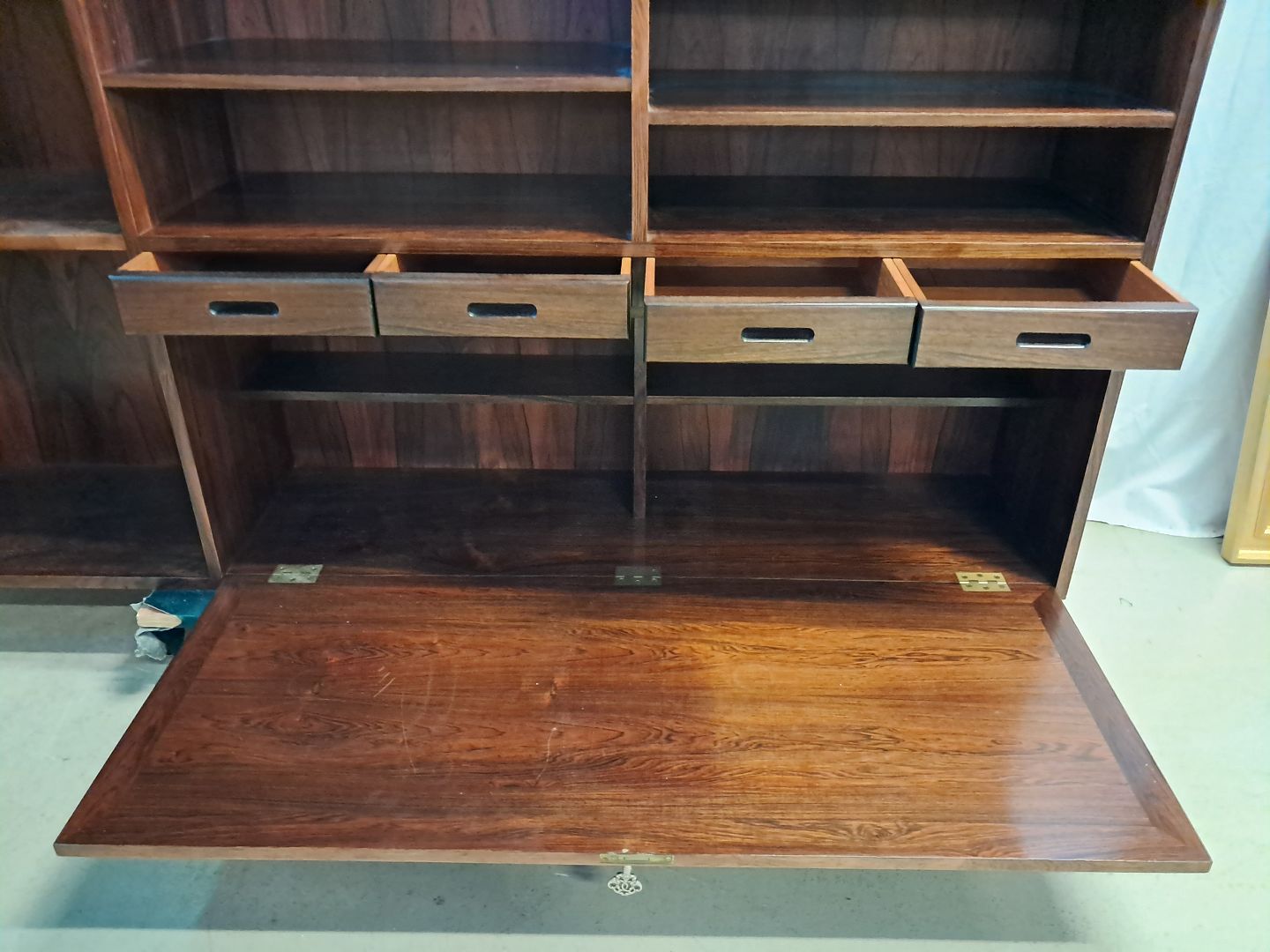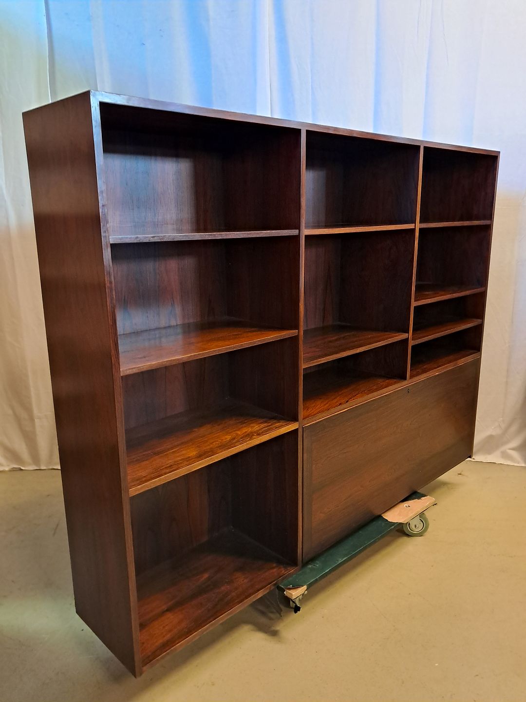 Reol i fineret palisander, fra 1960erne. Den har brugsspor. Højde 143cm Bredde 164cm Dybde 30cm Emne nummer: 77242