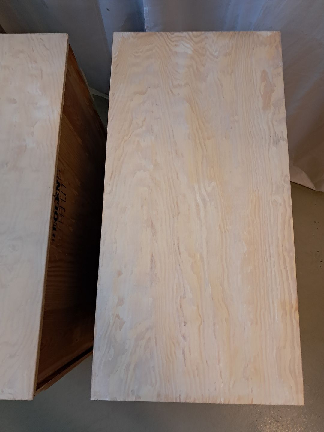 2 At-Bo reolkasser i krydsfiner, fra 2000erne. De har brugsspor og der medfølger ikke ophæng. Højde 70cm Bredde 70cm Dybde 34cm Emne nummer: 77282
