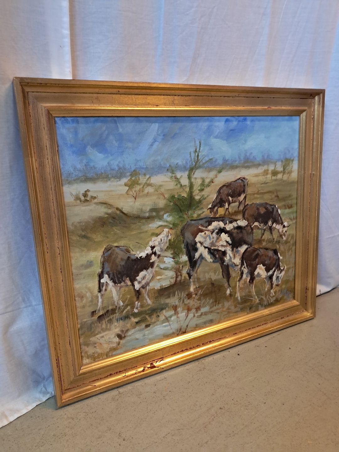 Maleri i guldmalet ramme af : Mogens Amdi Thorsen (1924-2016) Det har brugsspor. Højde 61cm Bredde 71cm Emne nummer: 77326