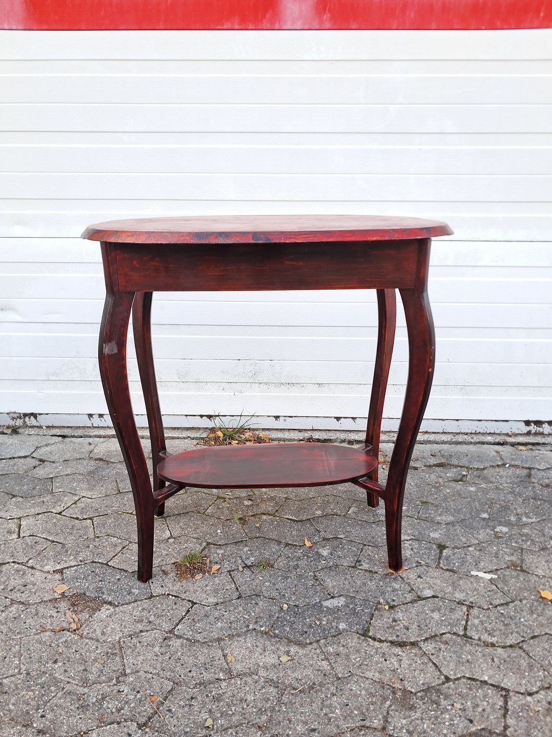 Bord i bejdset massivt fyrretræ, fra 1920erne. Det har brugsspor. Højde 77cm Bredde 75cm Dybde 44cm Emne nummer: 77357