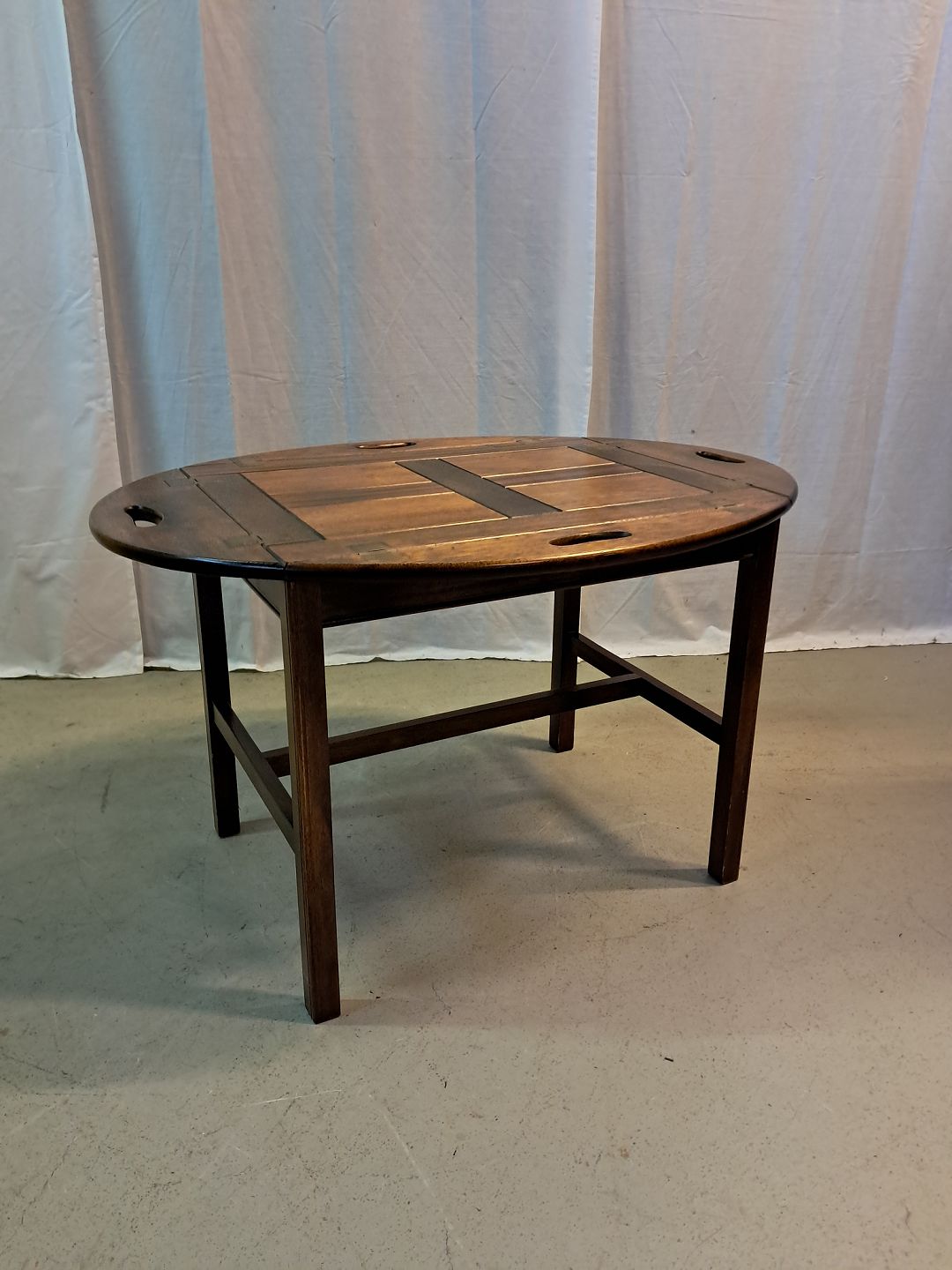 Sofabord i fineret mahogni, fra 1980erne. Det har brugsspor. Højde 54cm Bredde 64cm Længde 88cm Emne nummer: 77378