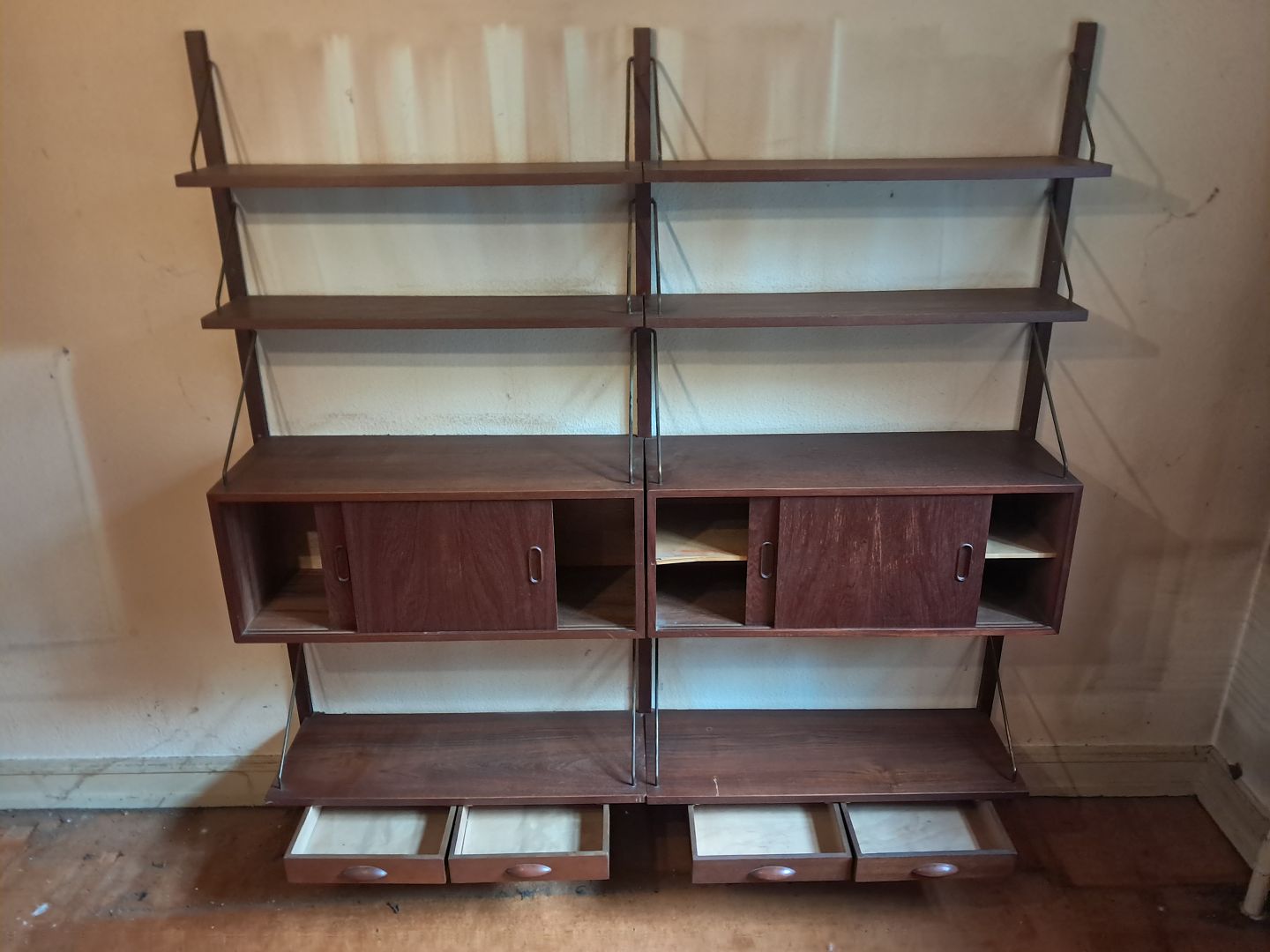 Vangesystems reol i fineret teaktræ, fra 1960erne.
