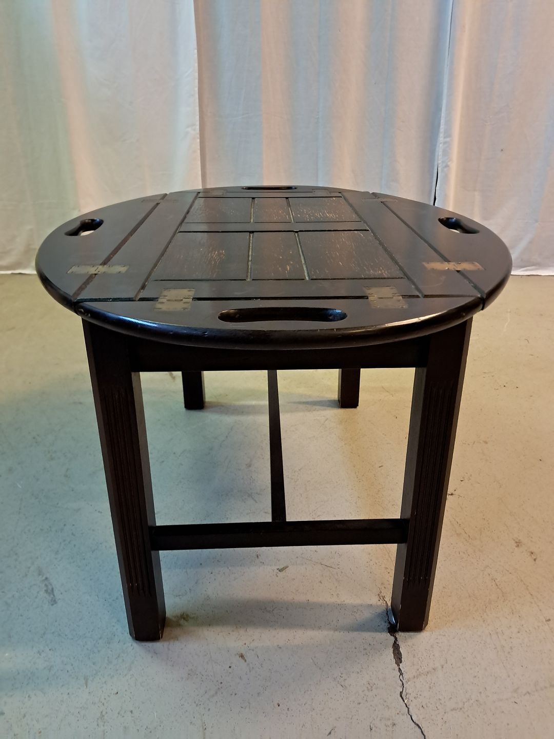 Butlers tray i fineret bøgetræ, fra 1980erne. Det har brugsspor. Højde 47cm Bredde 64cm Længde 83cm Emne nummer: 77409